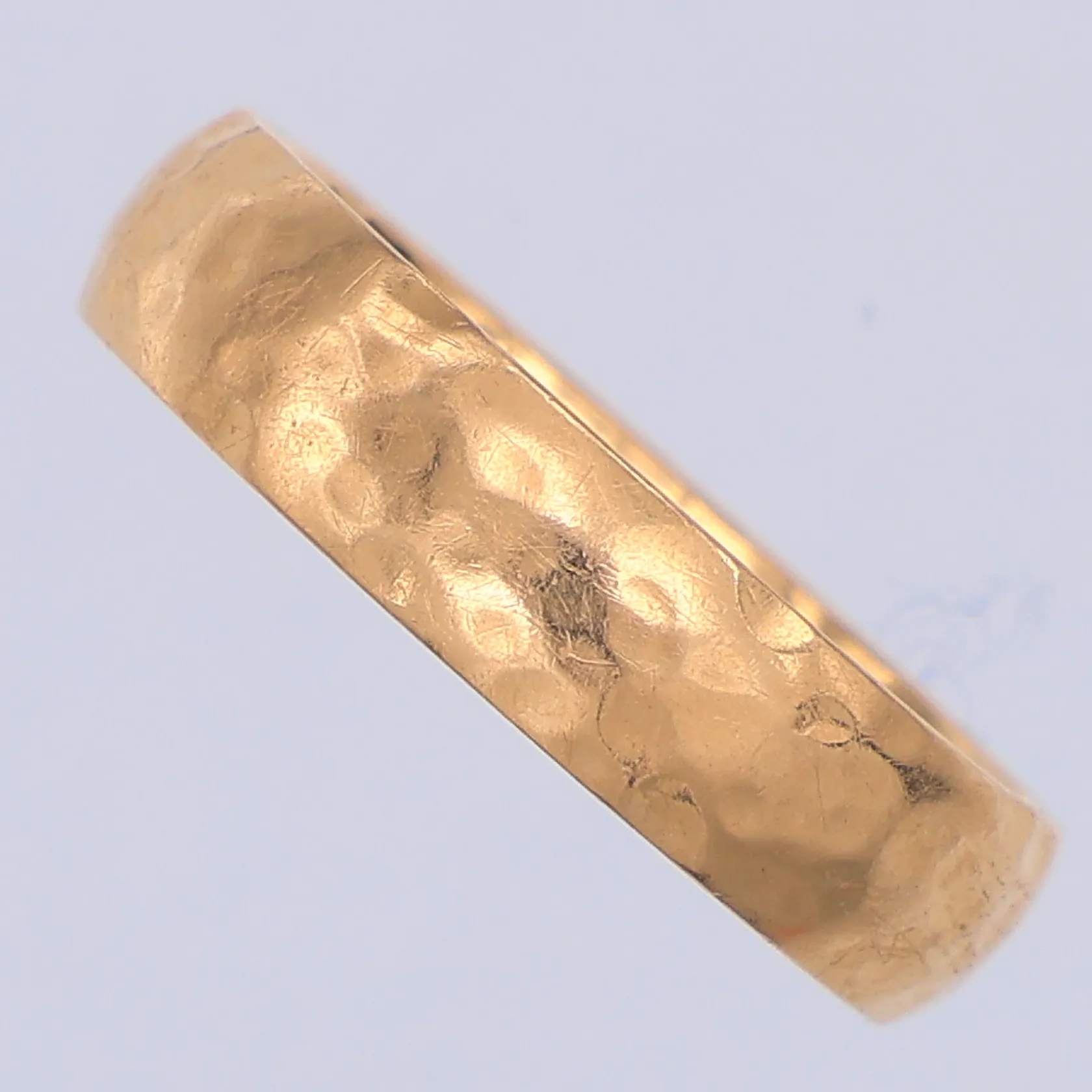 Ring, hamrad yta, stl 18¼, Schalin, gravyr, 18K Vikt: 5,9 g.