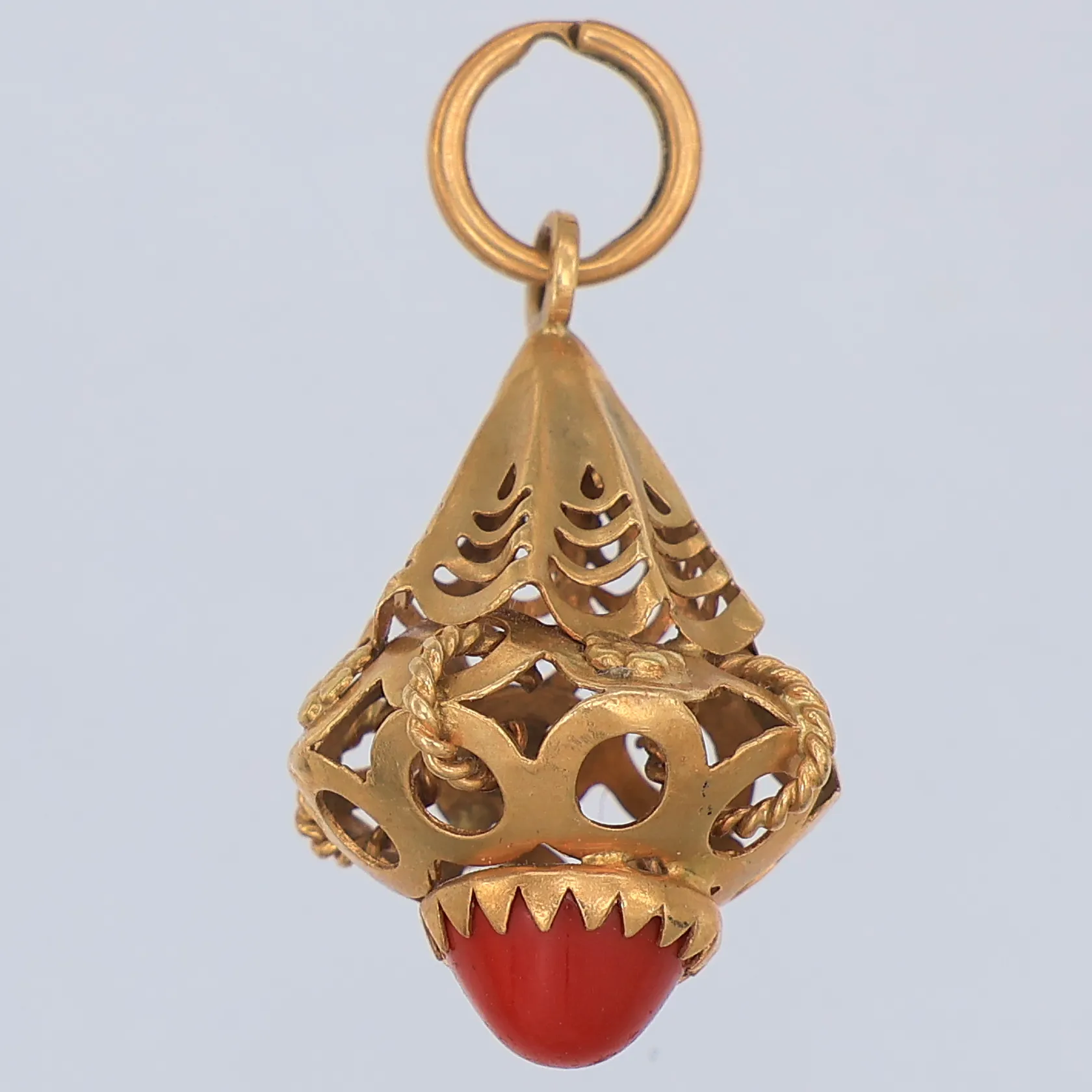 Hänge, röd sten, genombrutet mönster, 32mm, 18K Vikt: 3,5 g.
