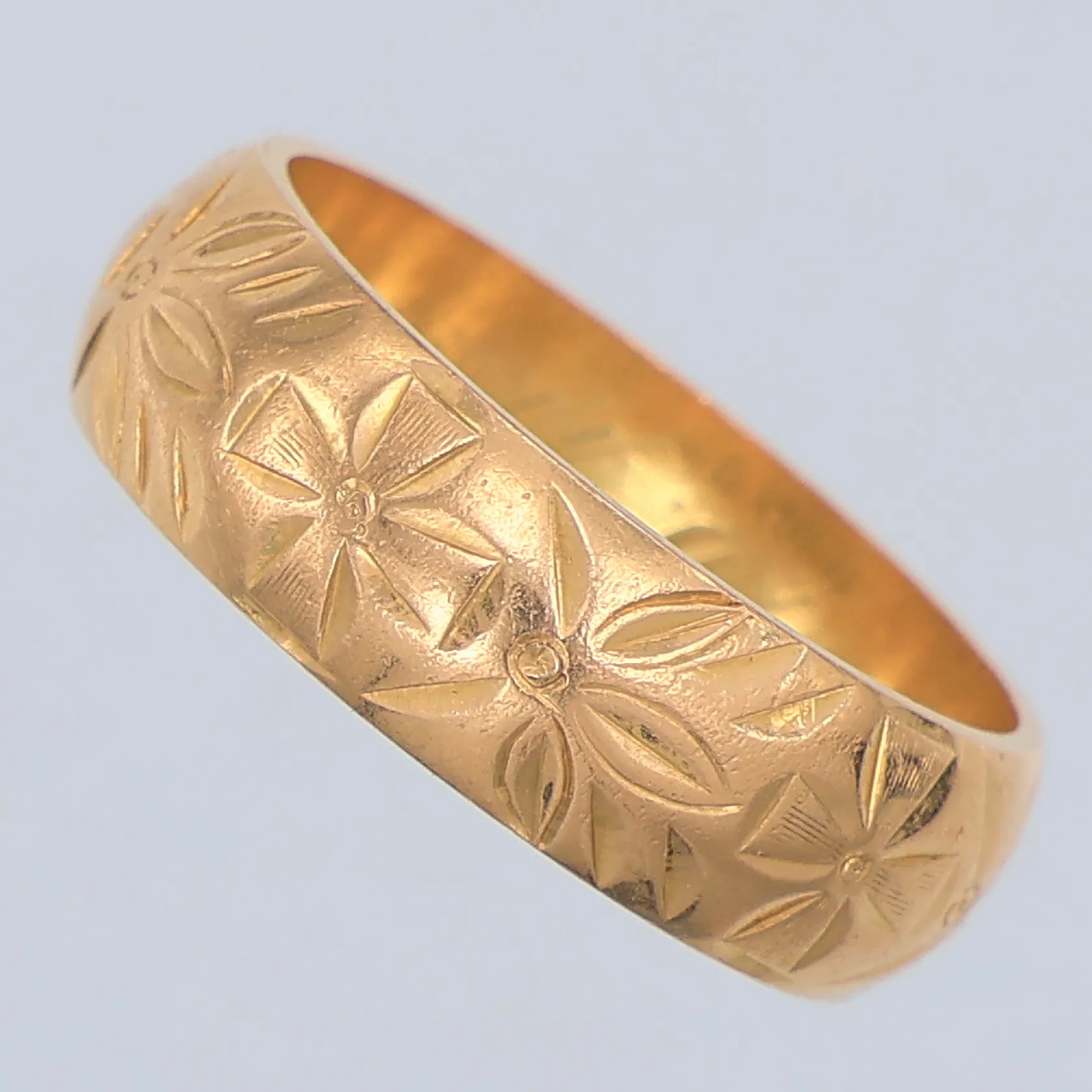 Ring mönstrad, stl 19, gravyr, 18K Vikt: 8,5 g.