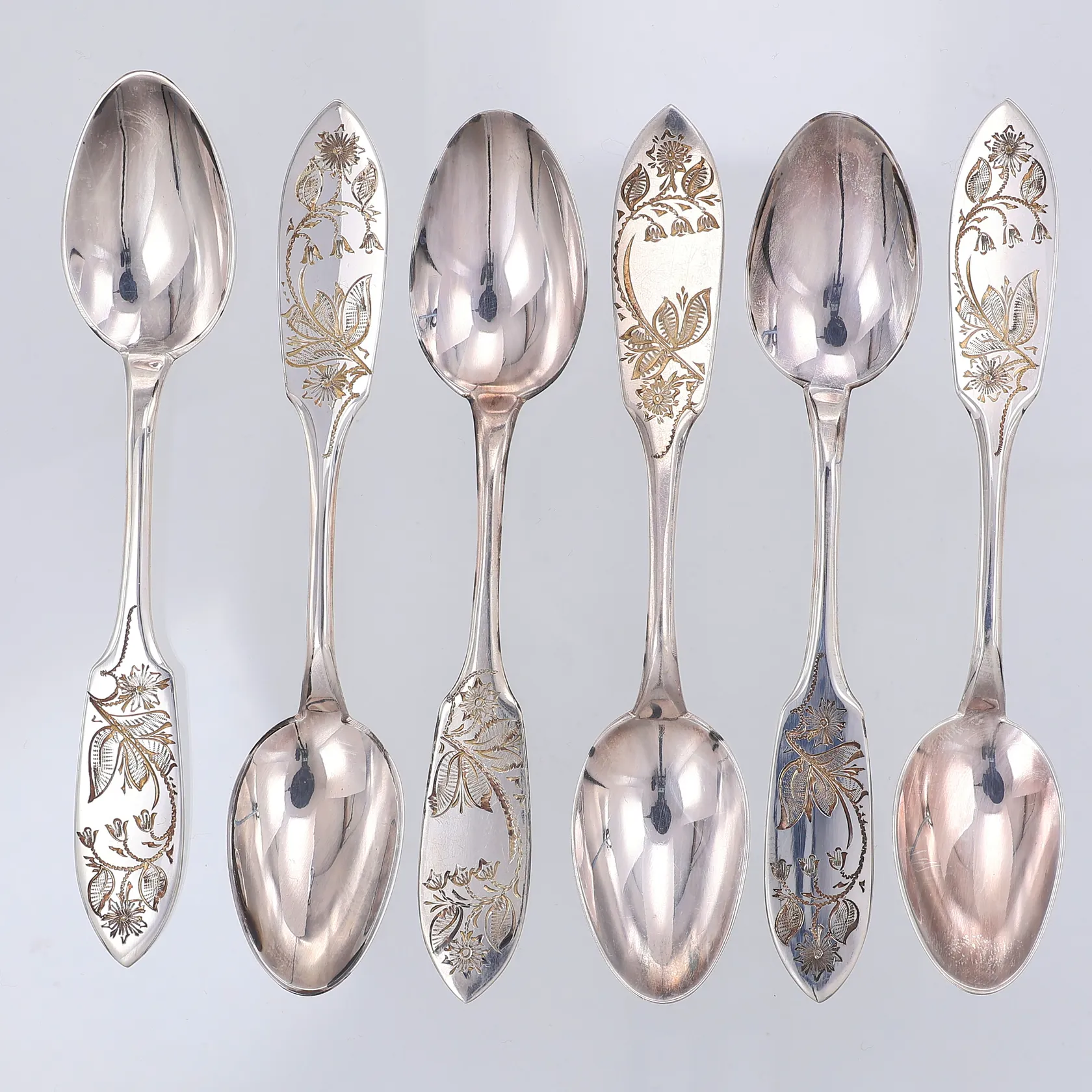 6 Kaffeskedar, modell Tornedal, 12 cm, Haparanda år 1964-89, 830/1000 silver Vikt: 82,8 g.