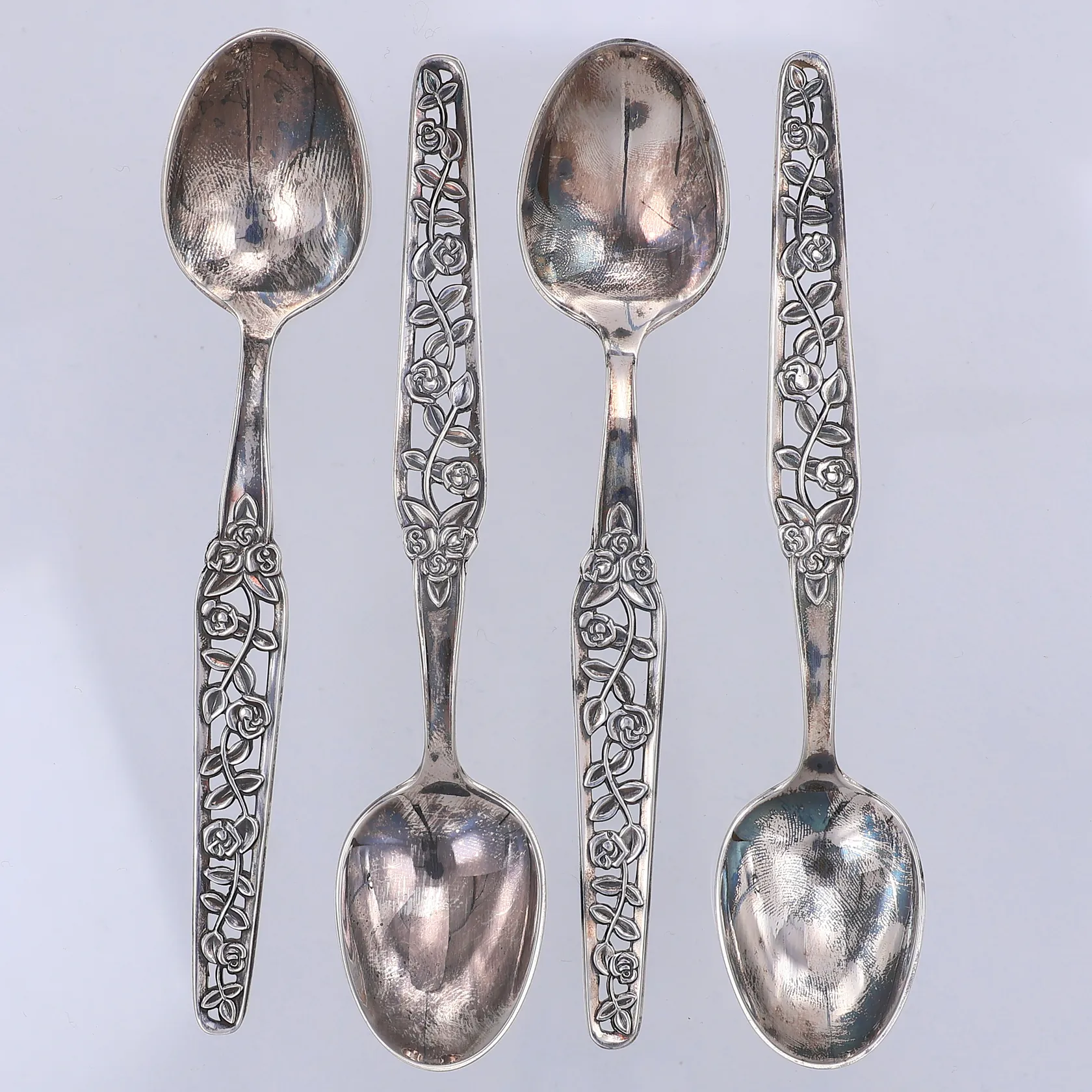 4 Kaffeskedar, modell rosenranka, 11,5cm, GAB år 1969-72, 830/1000 silver Vikt: 48,9 g.