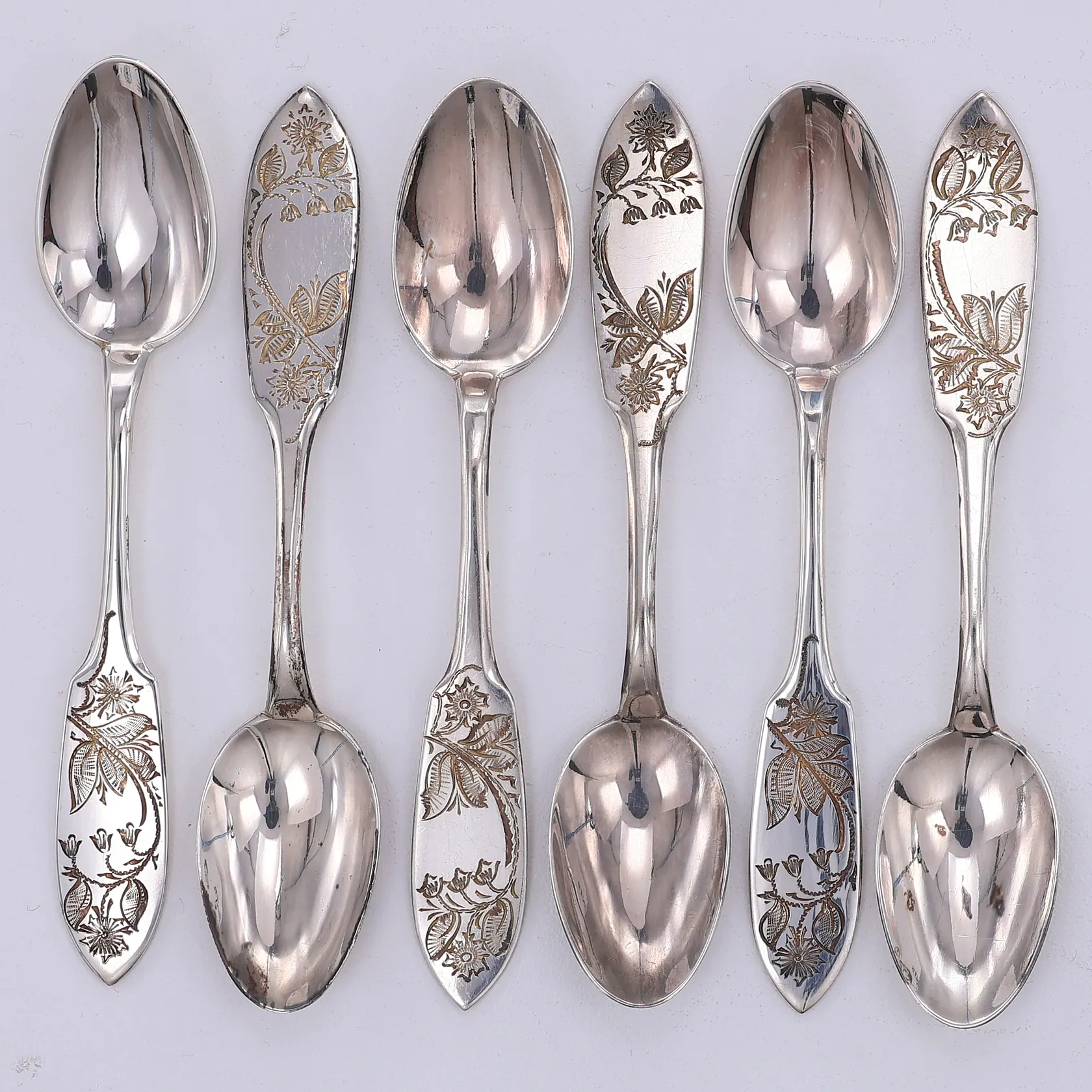 6 Kaffeskedar, modell Tornedal, 12cm, Haparanda år 1964-89, 830/1000 silver, etui Vikt: 77 g.