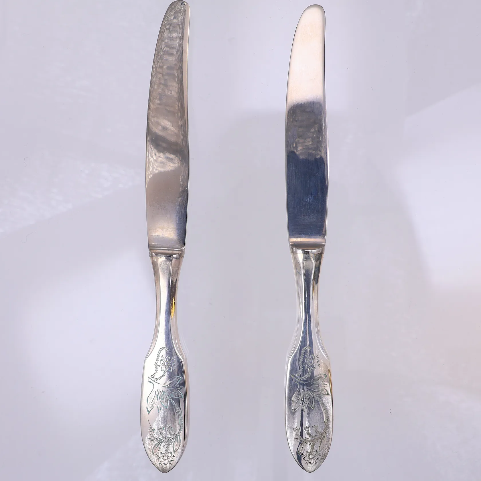 2 Bordsknivar, modell Tornedalen, 20cm, stålblad, Mema 1970-71, 830/1000 silver Vikt: 93,3 g.