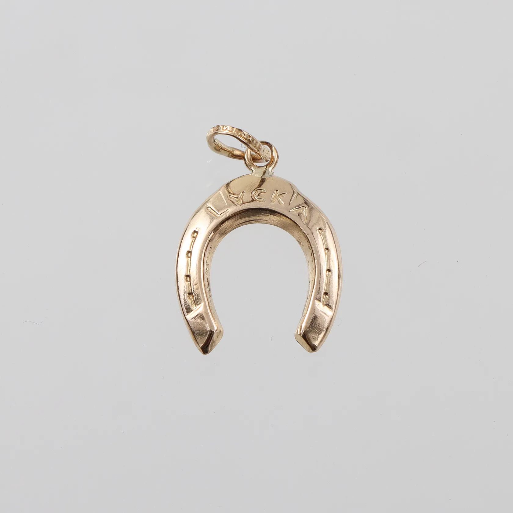 Berlock " Hästsko ", höjd utan ögla ca 13,5 mm, 18k Vikt: 0,5 g.