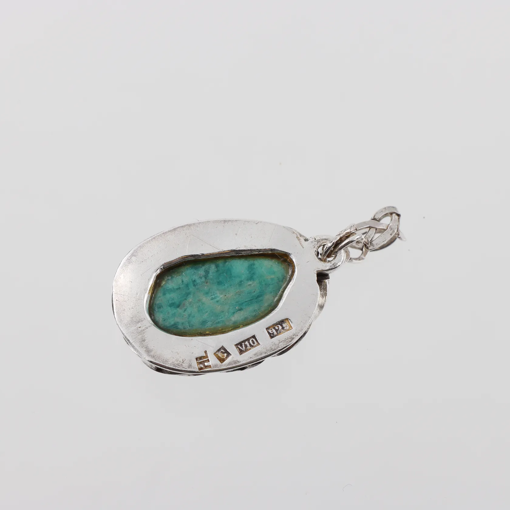 Hänge med sten, höjd med ögla ca 3,5cm, HL Karlstad 1995, silver Vikt: 8,2 g.