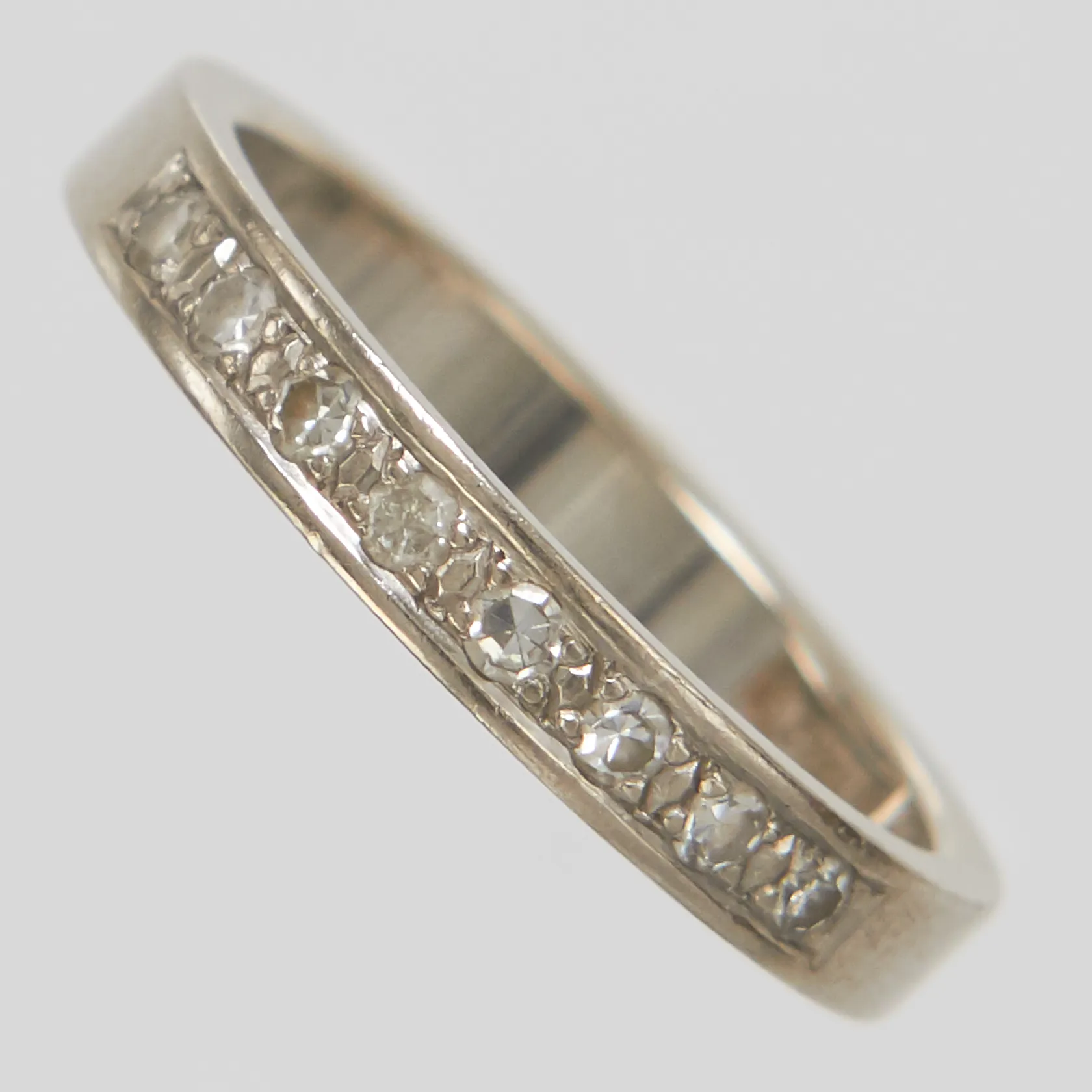 Ring, allians, åttkantslipade diamanter 8xca0,017ct, totalt 0,14ctv enligt gravyr, Ø16¼, bredd:2,7mm, vitguld, 18K. Vikt: 3,3 g.