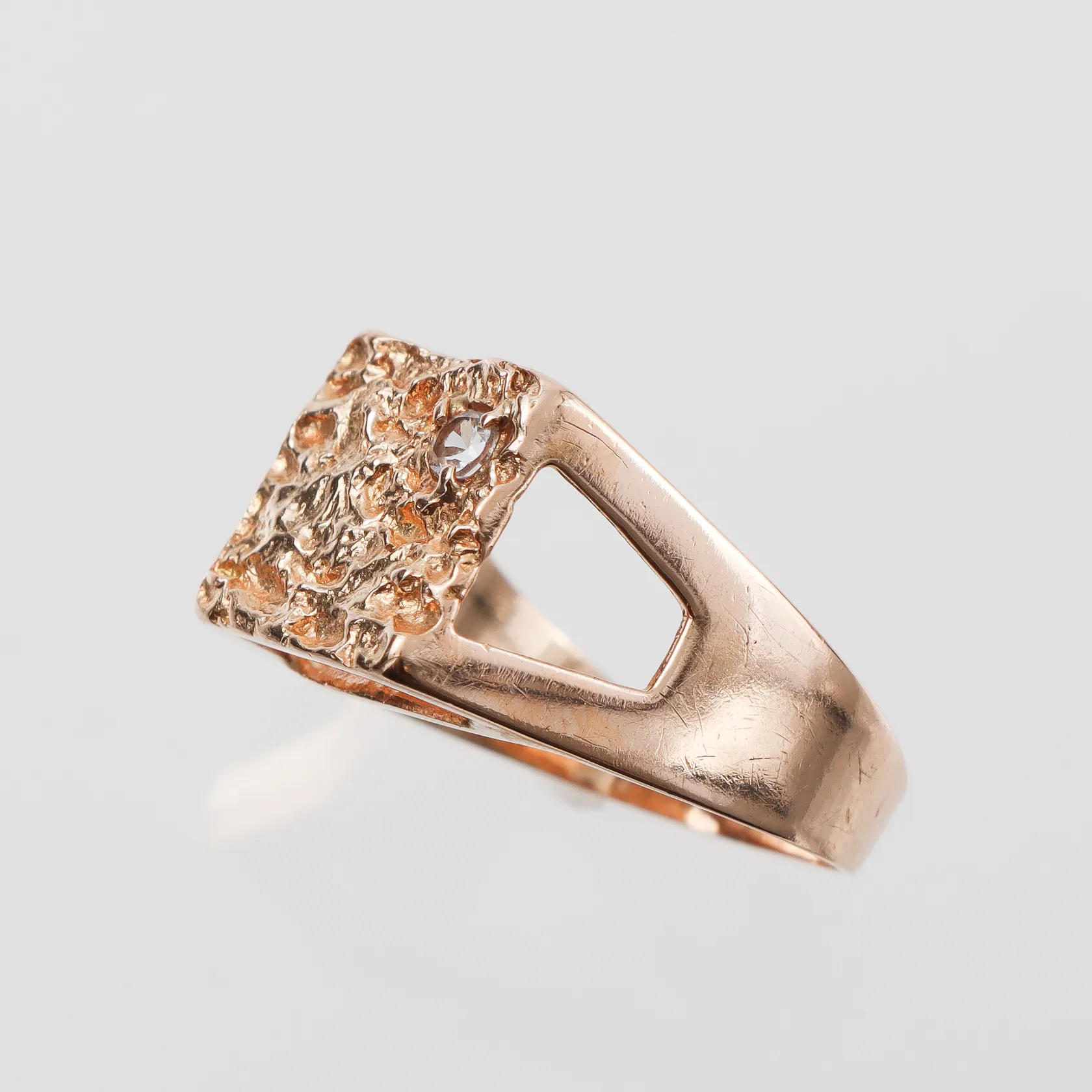Klackring med sten, Bengt Hallberg Köping, storlek 17 mm, bredd 2.4-10.4 mm, 18k. Vikt: 4,7 g.