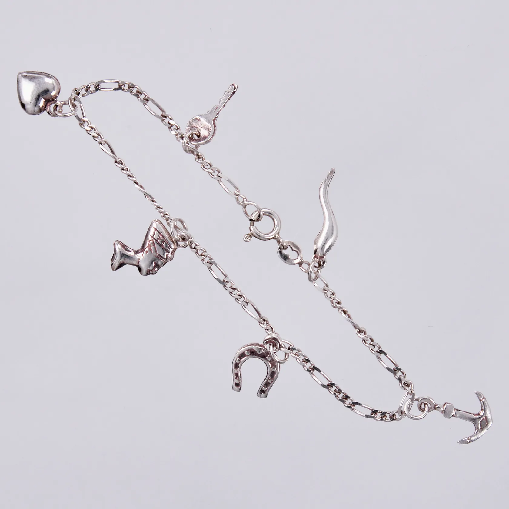 Armband Figaro med sex berlocker, längd: ca 18cm, bredd: ca 2,5mm, 925/1000 silver Vikt: 5,3 g.