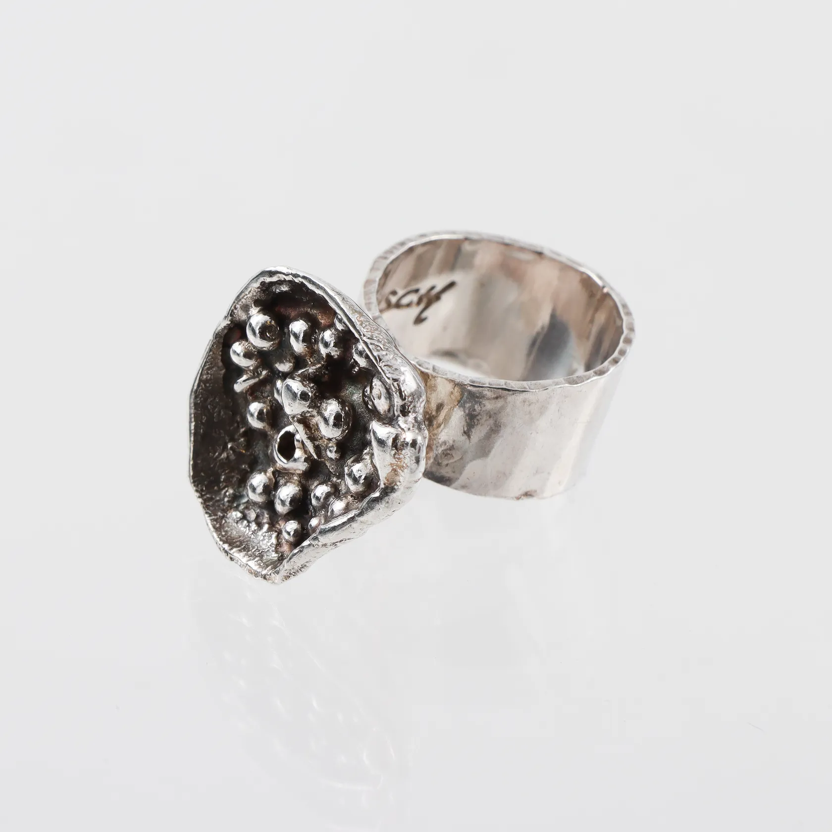 BERND JANUSCH. Ring,stämplad 1970,sterlingsilver, storlek 17 mm, bredd 7.8-20 mm. Vikt: 14 g.