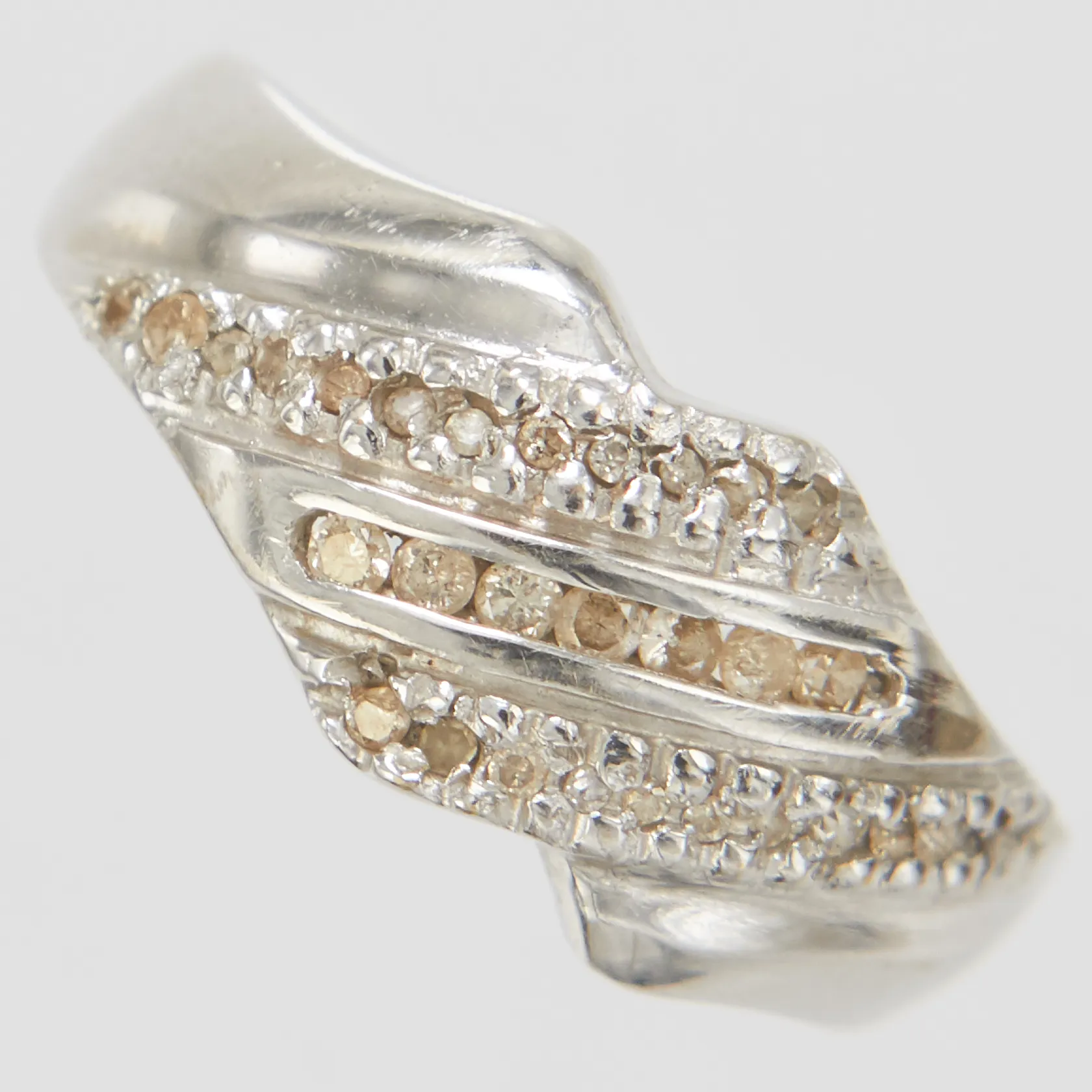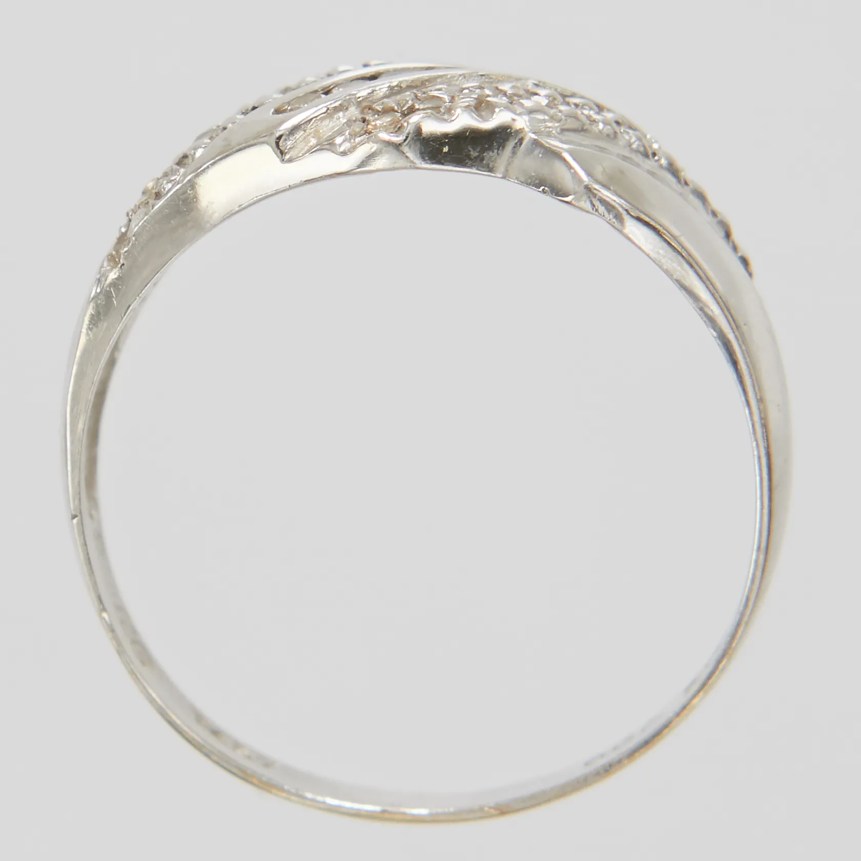 Ring med briljantslipade diamanter 7xca0,01ct + åttkantslipade 24xca0,025ct, piqué, Ø17½, bredd: 2,8-8,8, vitguld, 18K Vikt: 2,5 g.