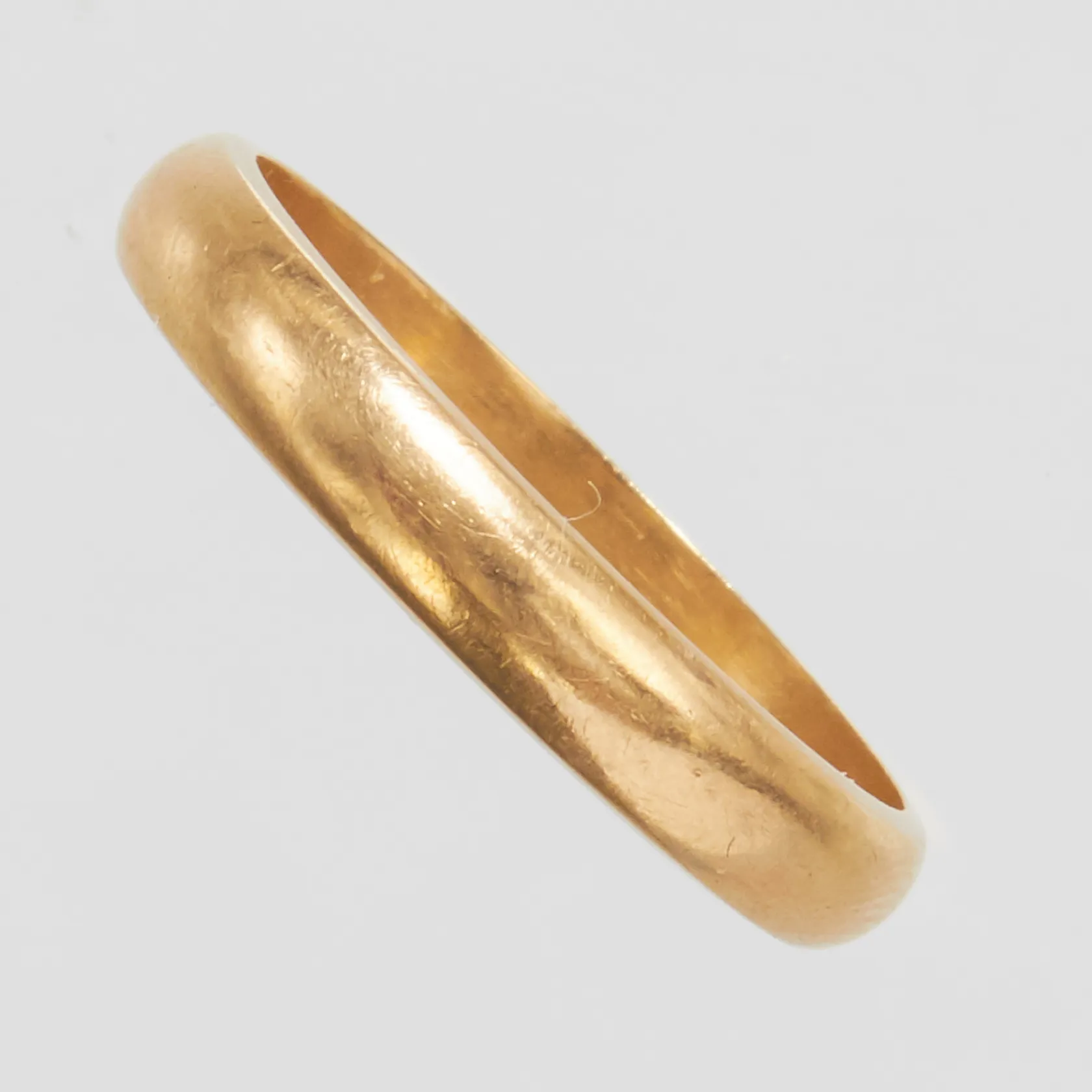 Ring slät, stl 19, bredd 3,5mm, repig, 18K Vikt: 3,8 g.