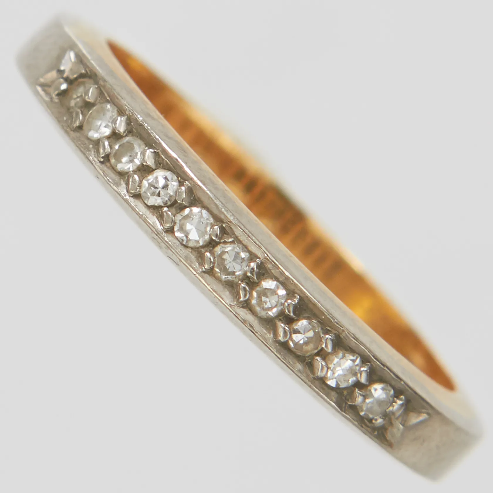 Ring, allians, åttkantslipade diamanter 10xca0,01ct, Ø16¼, bredd:3mm, personlig gravyr, vitguld/rödguld, 18K Vikt: 4 g.
