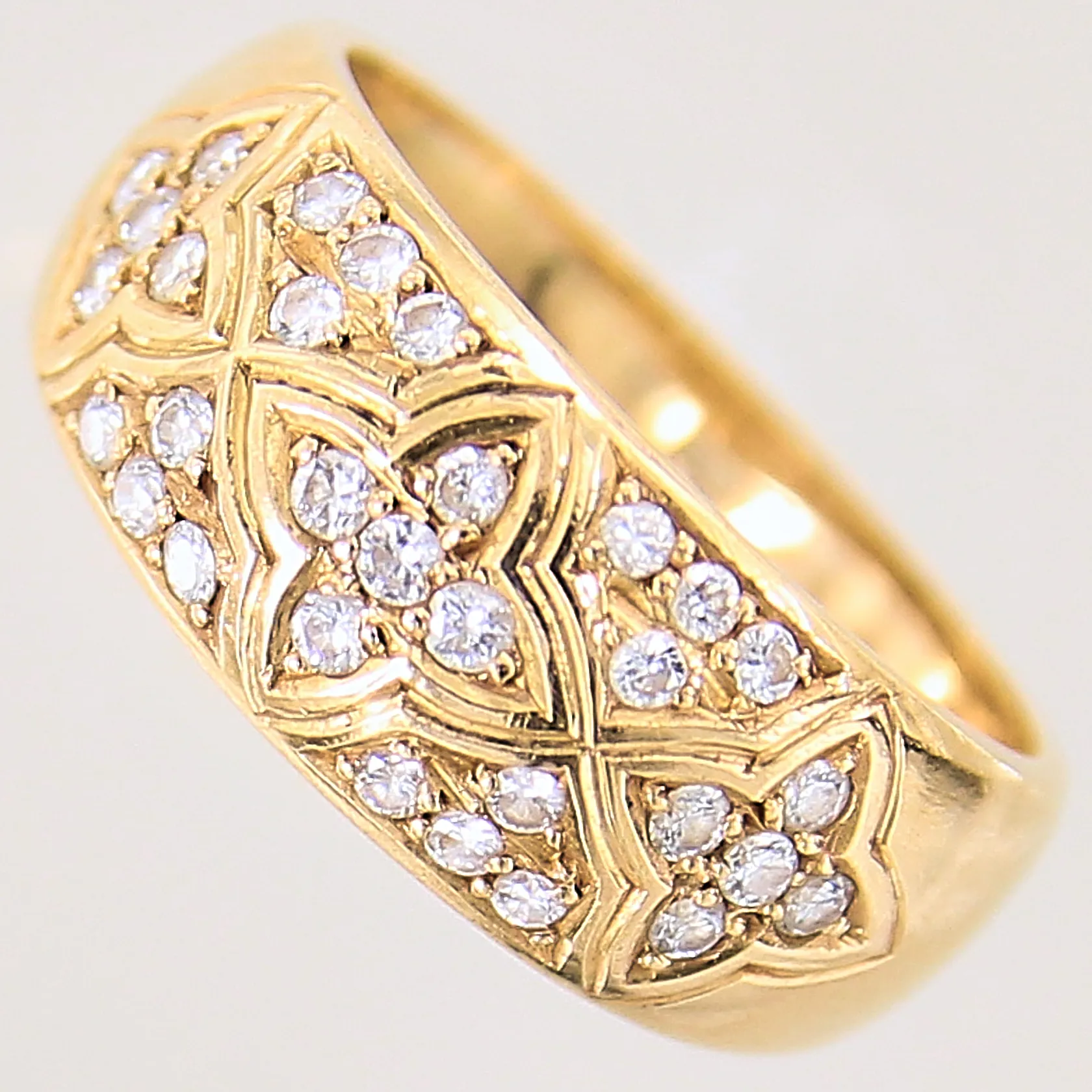 Ring med diamanter 31 x ca 0,01ct, stl 16½, bredd 5-8mm, 18K Vikt: 5,4 g.