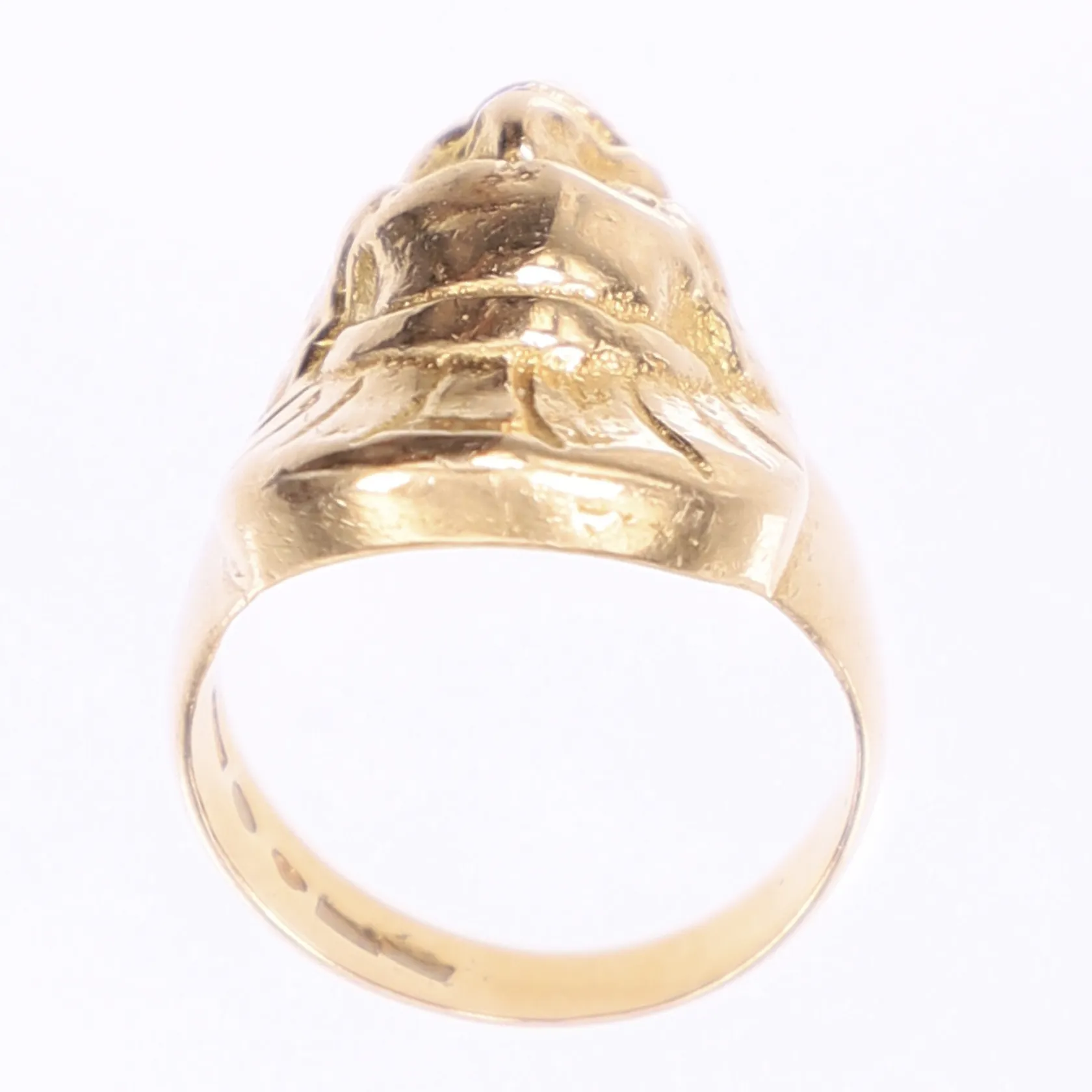 Ring med dekor i form av ansikte, stl 16¼, bredd 5-23mm, 18K Vikt: 18,2 g.