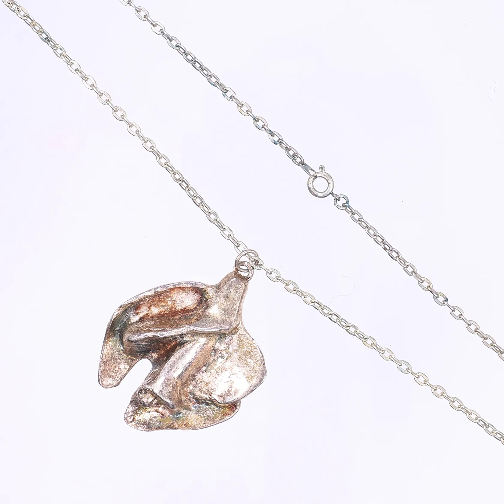 Halskedja med hänge, hänget av tenn tillverkat av Börje och Karin Tennung, Borås, stämpelmärkt, 40x50mm, kedjan av oädel metall med längd 60cm