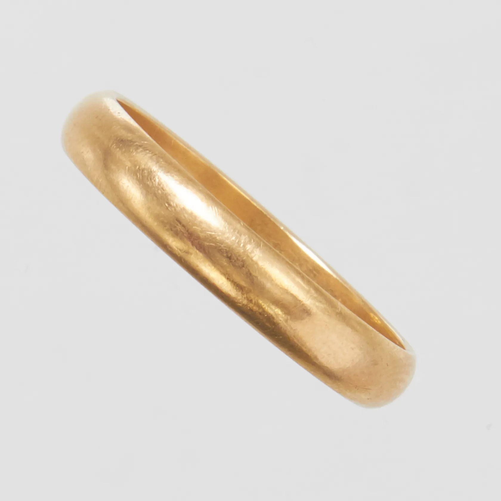 Ring slät, stl 19, bredd 3,5mm, repig, 18K Vikt: 3,8 g.