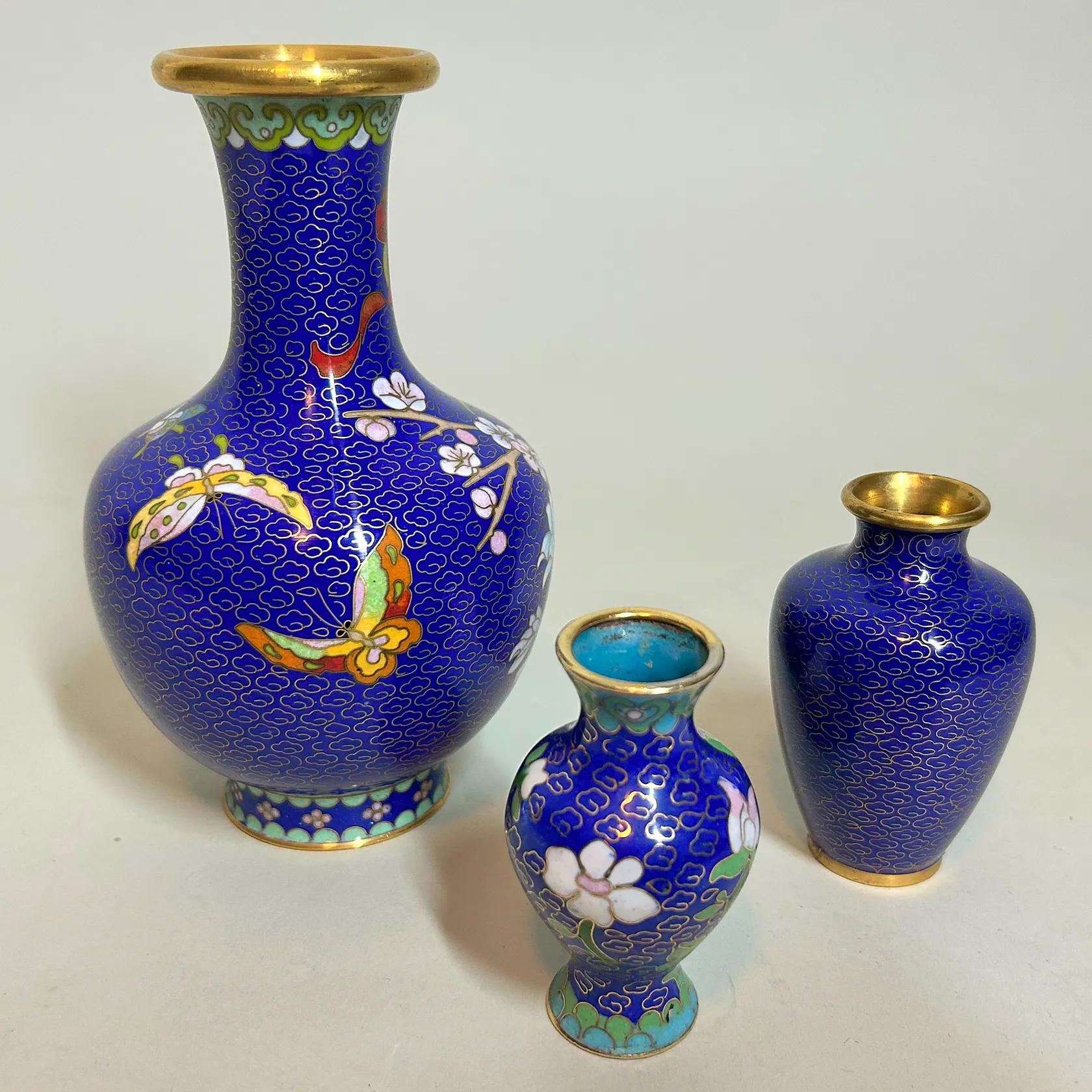 3 Vaser Cloisonné, 15,5cm, 8cm & 7,2cm