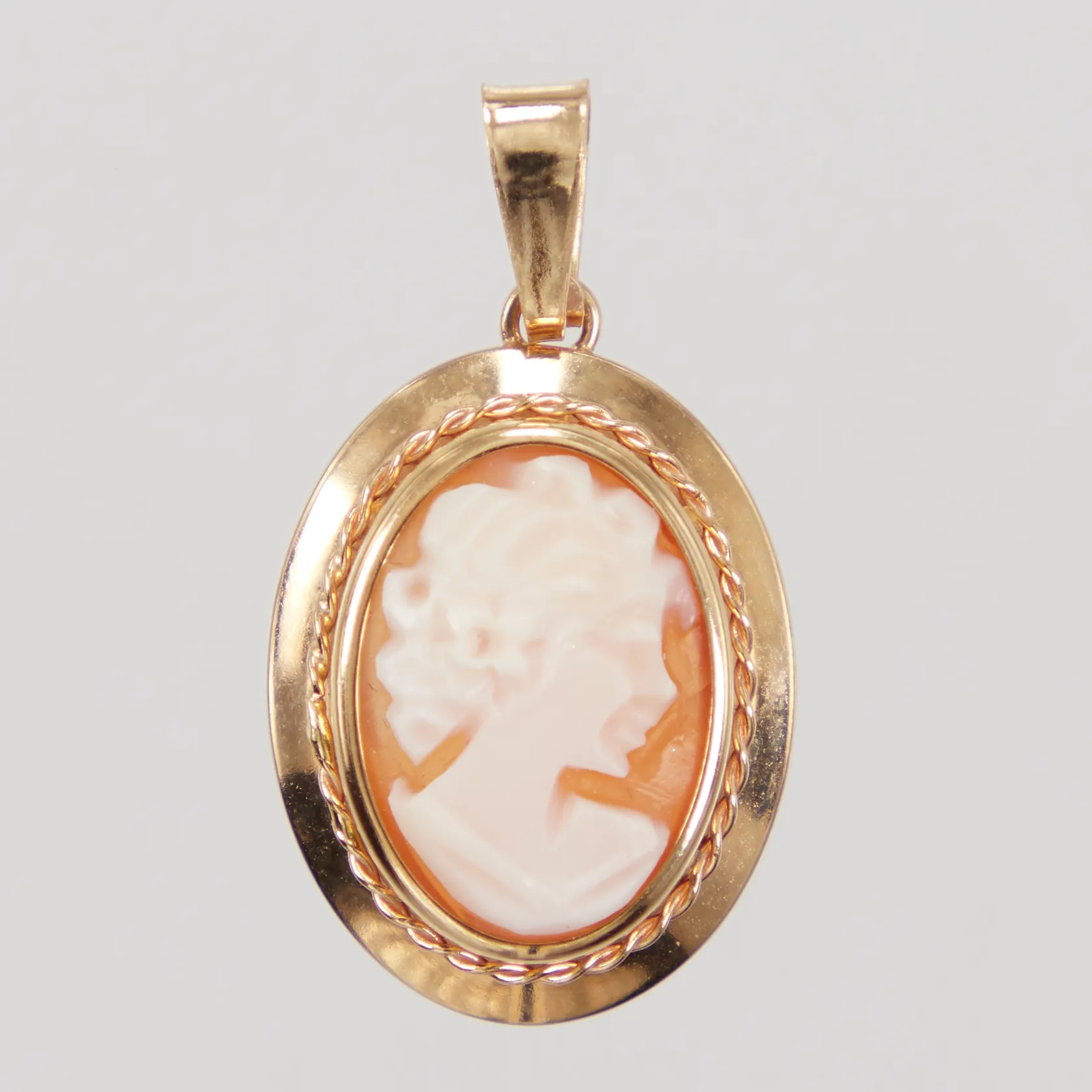 Hänge med camé, längd: 24mm, bredd: 2,4-14mm, 18K Vikt: 1,5 g.