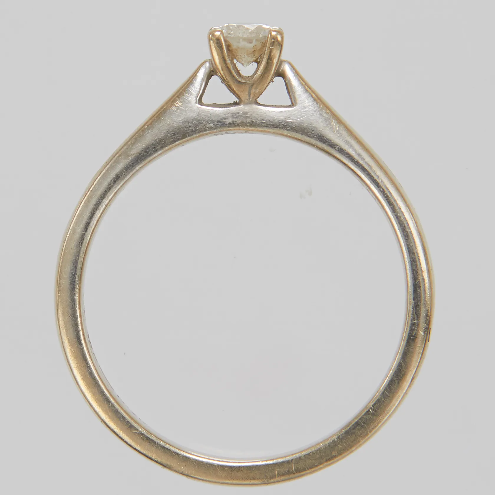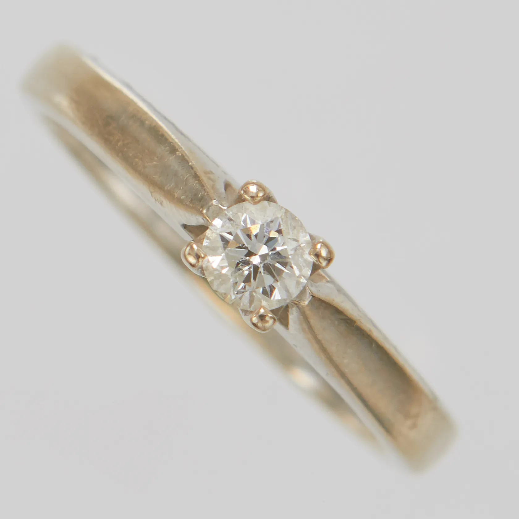 Enstensring med diamant 1 x 0,20ct, W/P1 enligt gravyr, Ø17½, bredd: 2,7-3,9mm, GHA, behov av rodiering, 18K Vikt: 4,1 g.