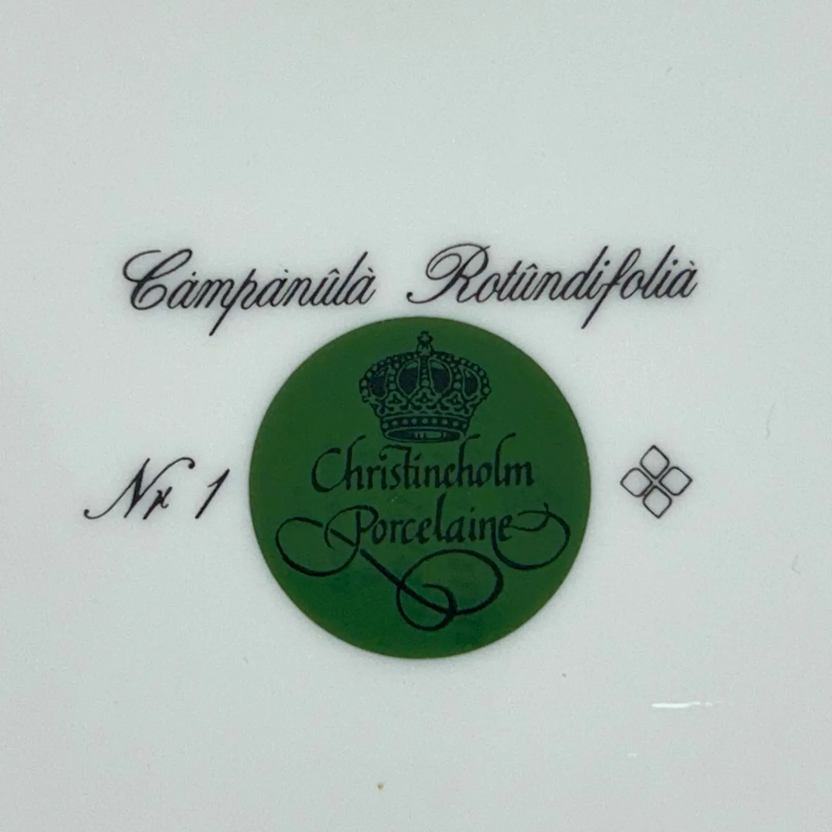 4 Tallrikar Blåklocka Christineholms porslin, Ø 25cm, fyrklövern, bruksslitage