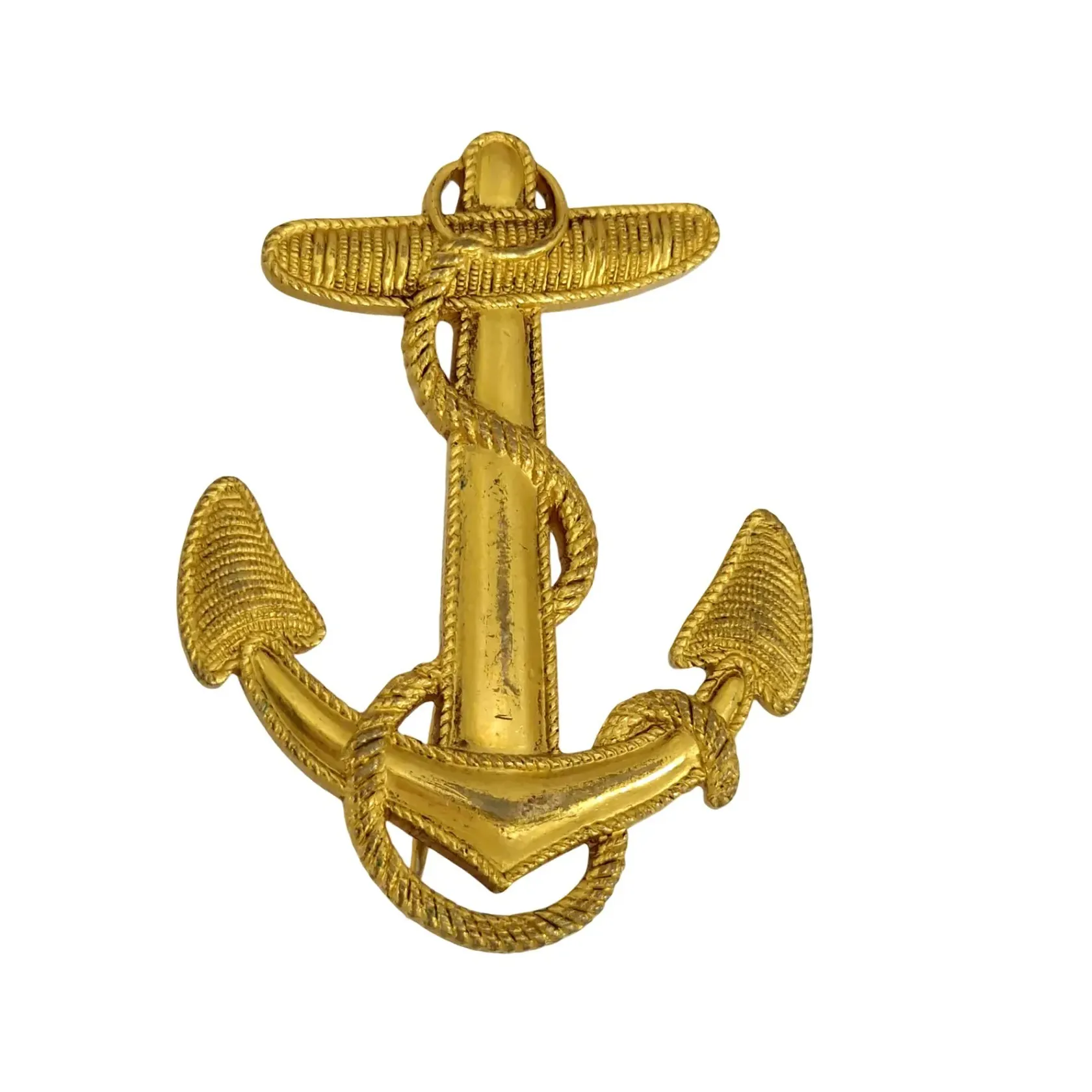 Mössmärke Svenska Flottan förgylld metall, mått 50,5 x 37,5 mm, Sporrong & Co Stockholm, vikt 14 gram