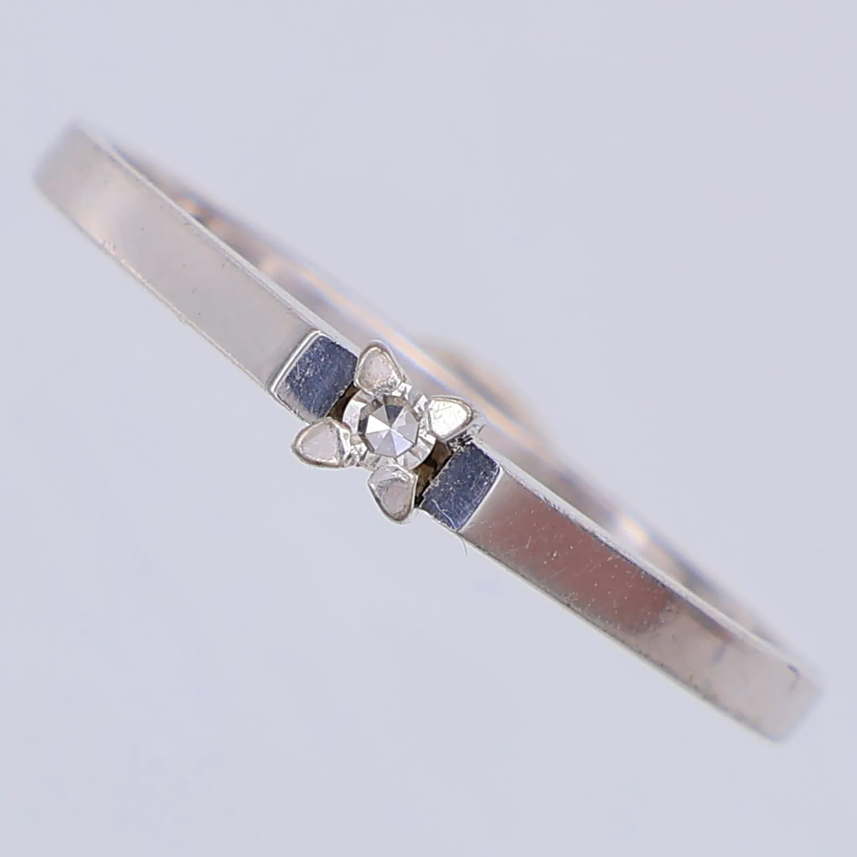Ring diamant ca 0,01ct 8/8slipad, stl 18¾, vitguld, saknar stämplar, 18K Vikt: 2,3 g.