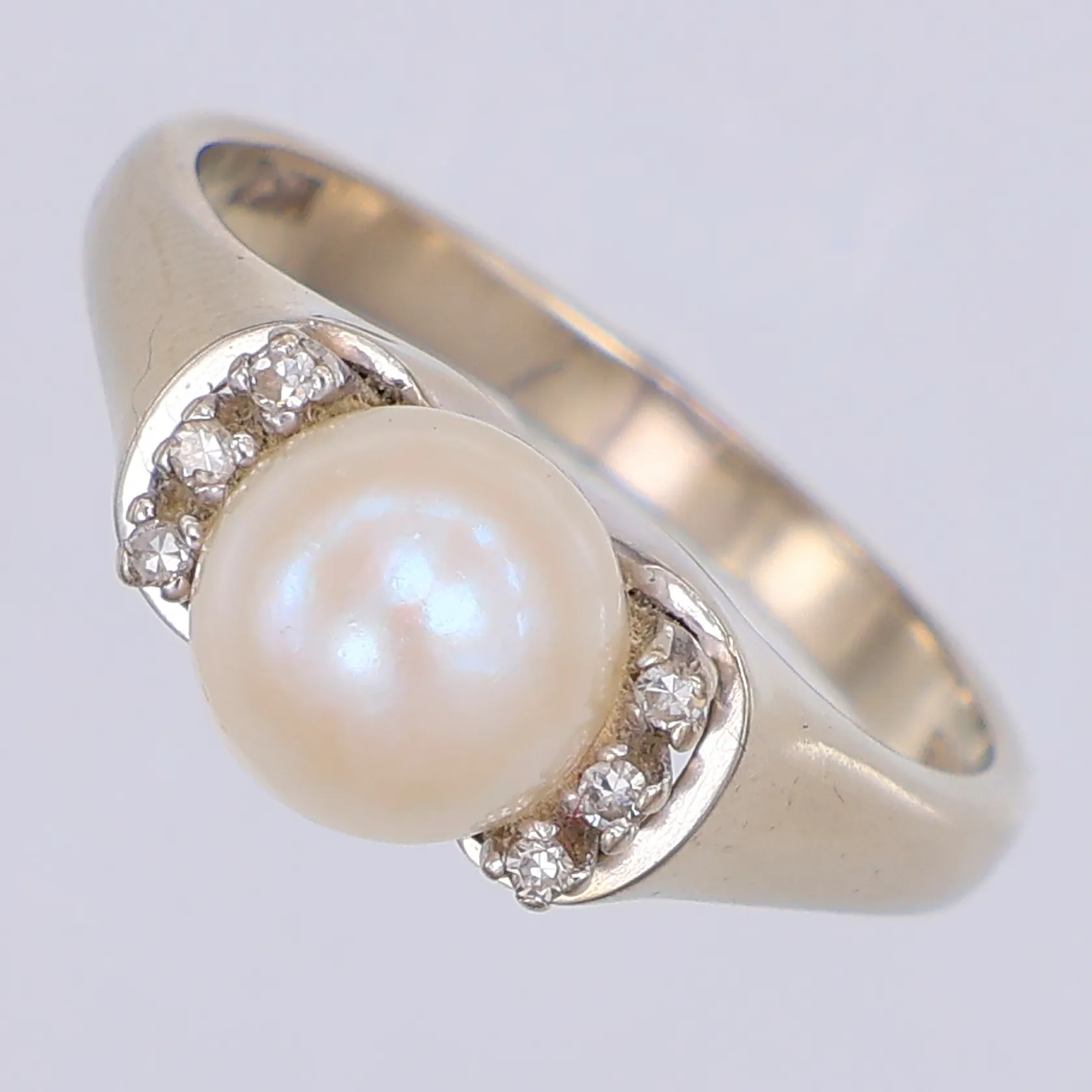 Ring odlad saltvattenpärla diamanter 0,06ctv 8/8slipade, vitguld, stl 16¼,18K Vikt: 4,3 g.