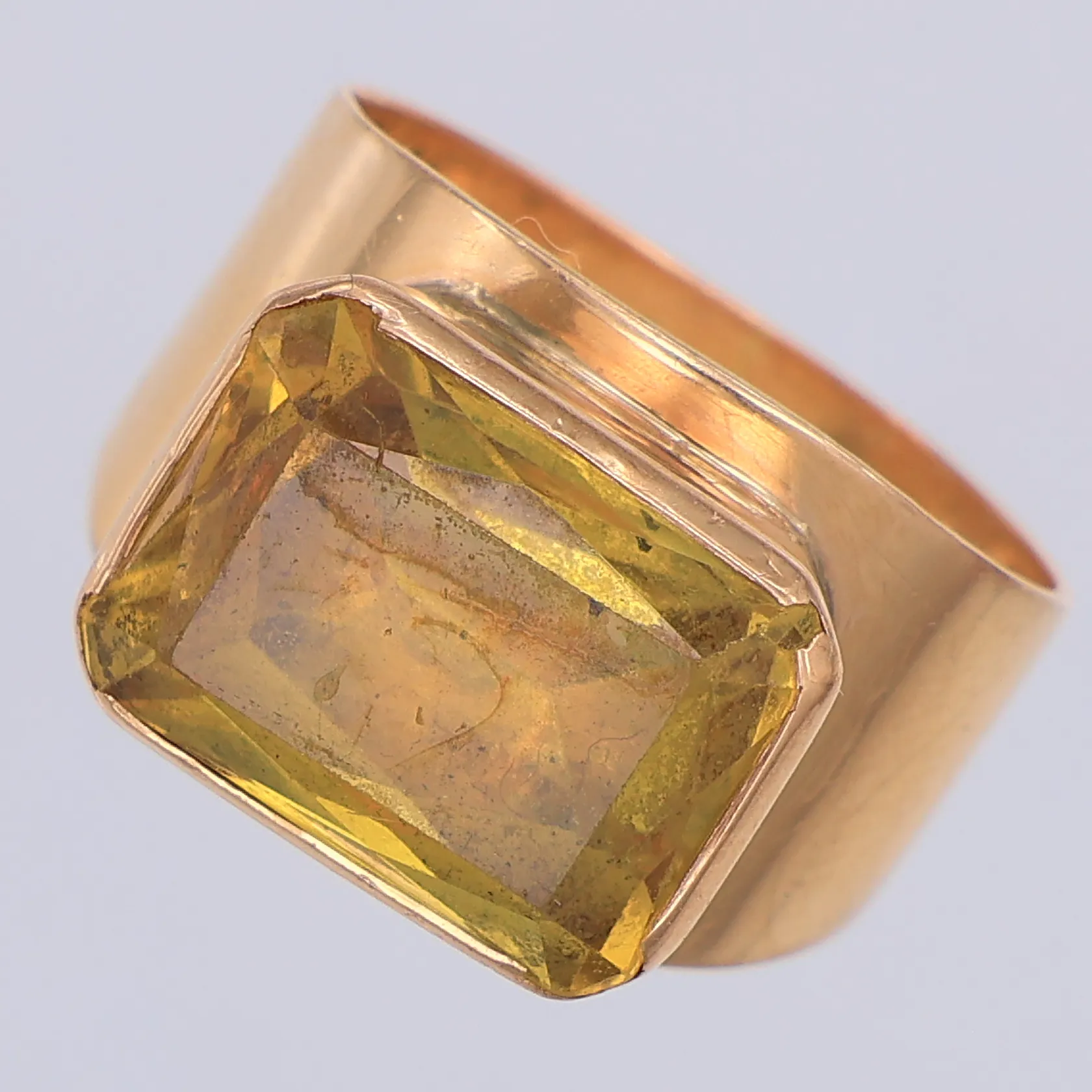 Ring, syntetisk gul safir, stl 17, Kupianen år 1959, 14K Vikt: 7,3 g.