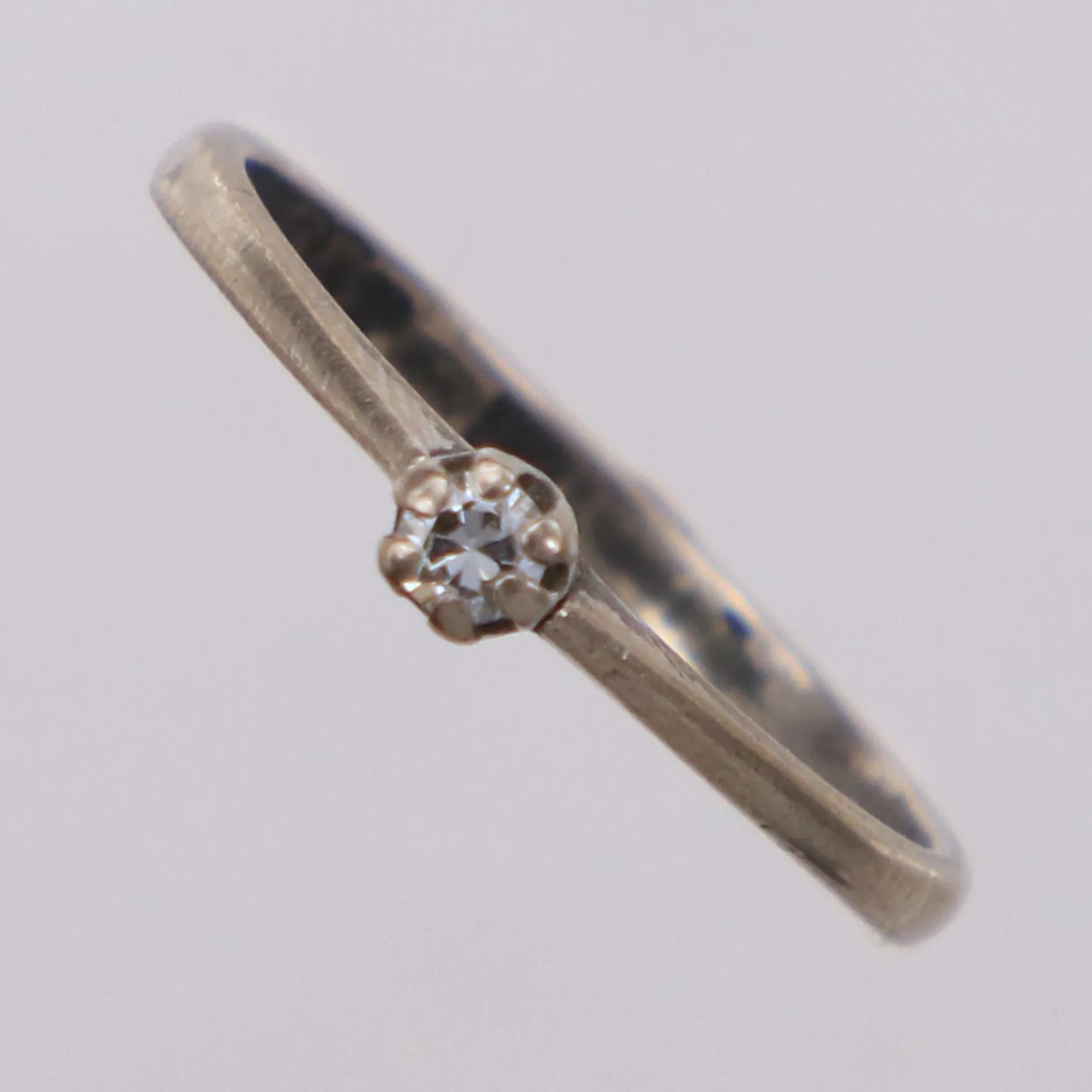 Ring med diamant 1xca0,05ct, stl 16, bredd 1,2-2,9mm, vitguld, 18K Vikt: 1,8 g.