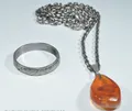 Halskedja med hänge + 1 ojämn ring ,längd , 50cm , Ø 18 mm silver Vikt: 9,6 g.
