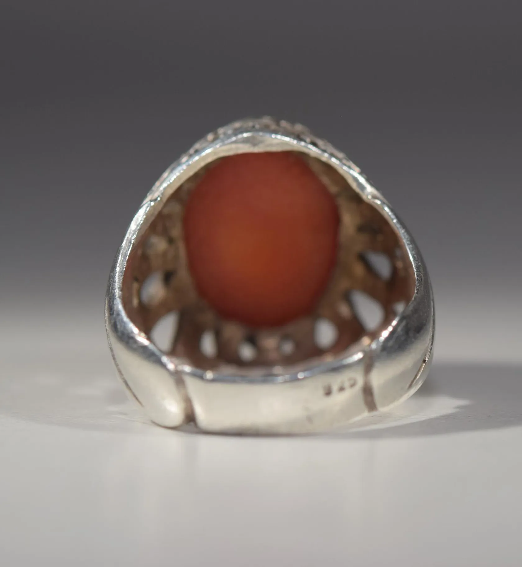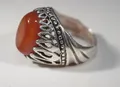 Ring med vinröd sten 19,5 mm, bredd 20,69 mm, silver 925/1000 Vikt: 10,7 g.