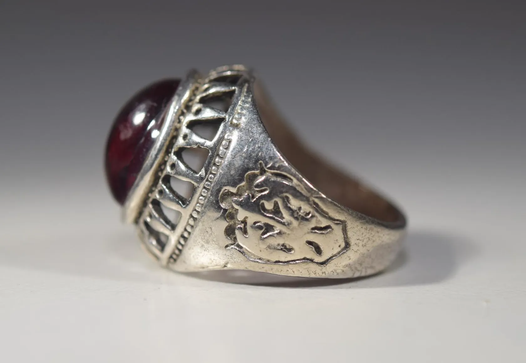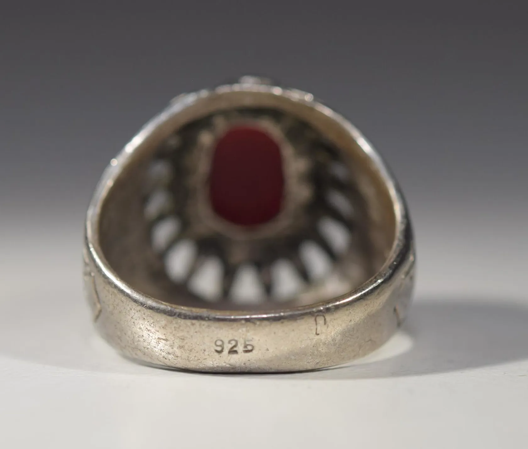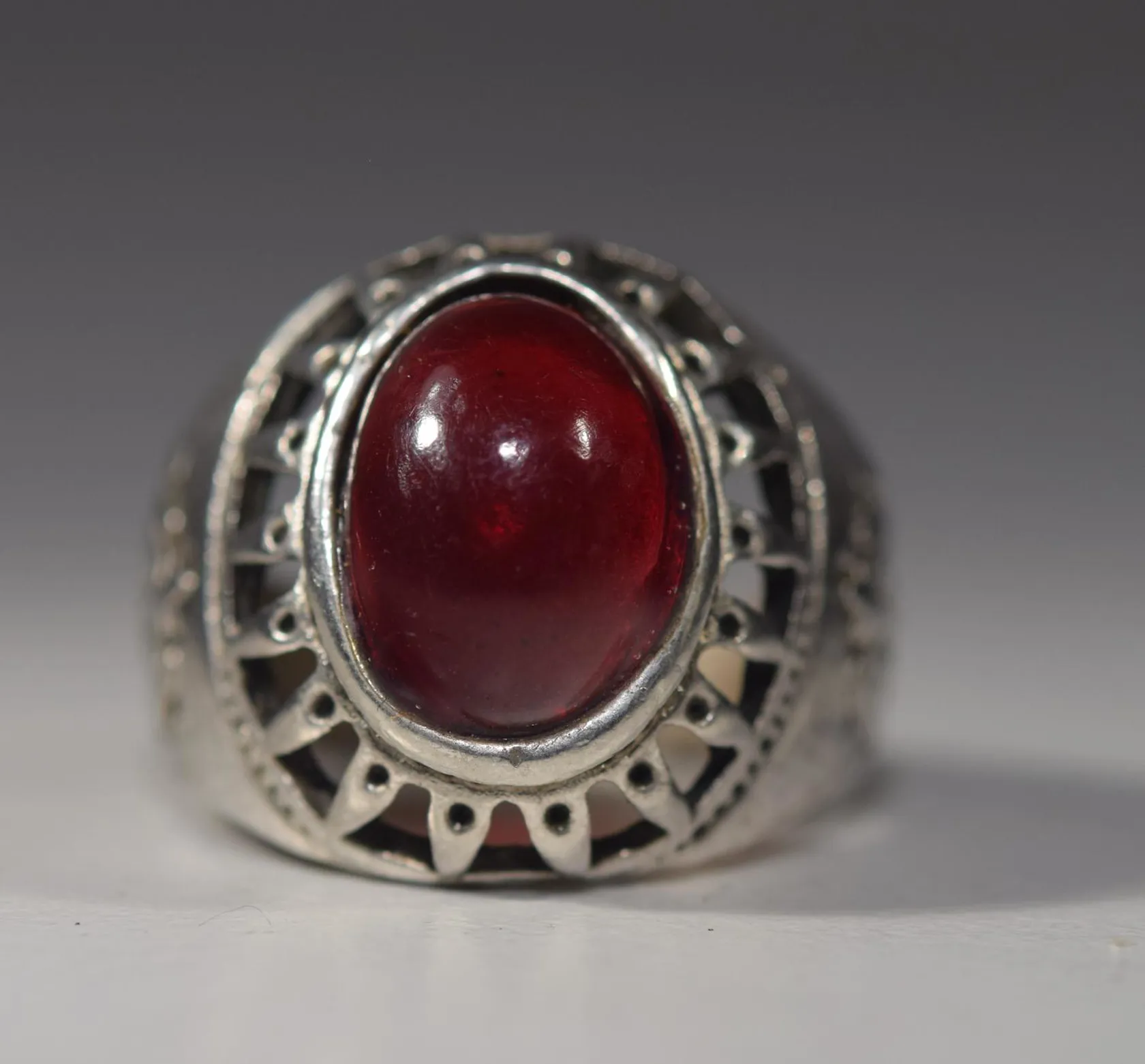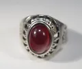 Ring med vinröd sten, Ø 19½ mm, bredd 20,69, silver 925/1000 Vikt: 7,7 g.