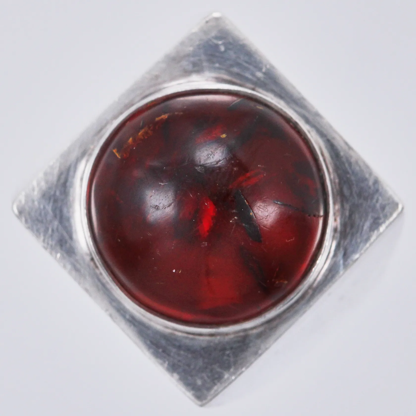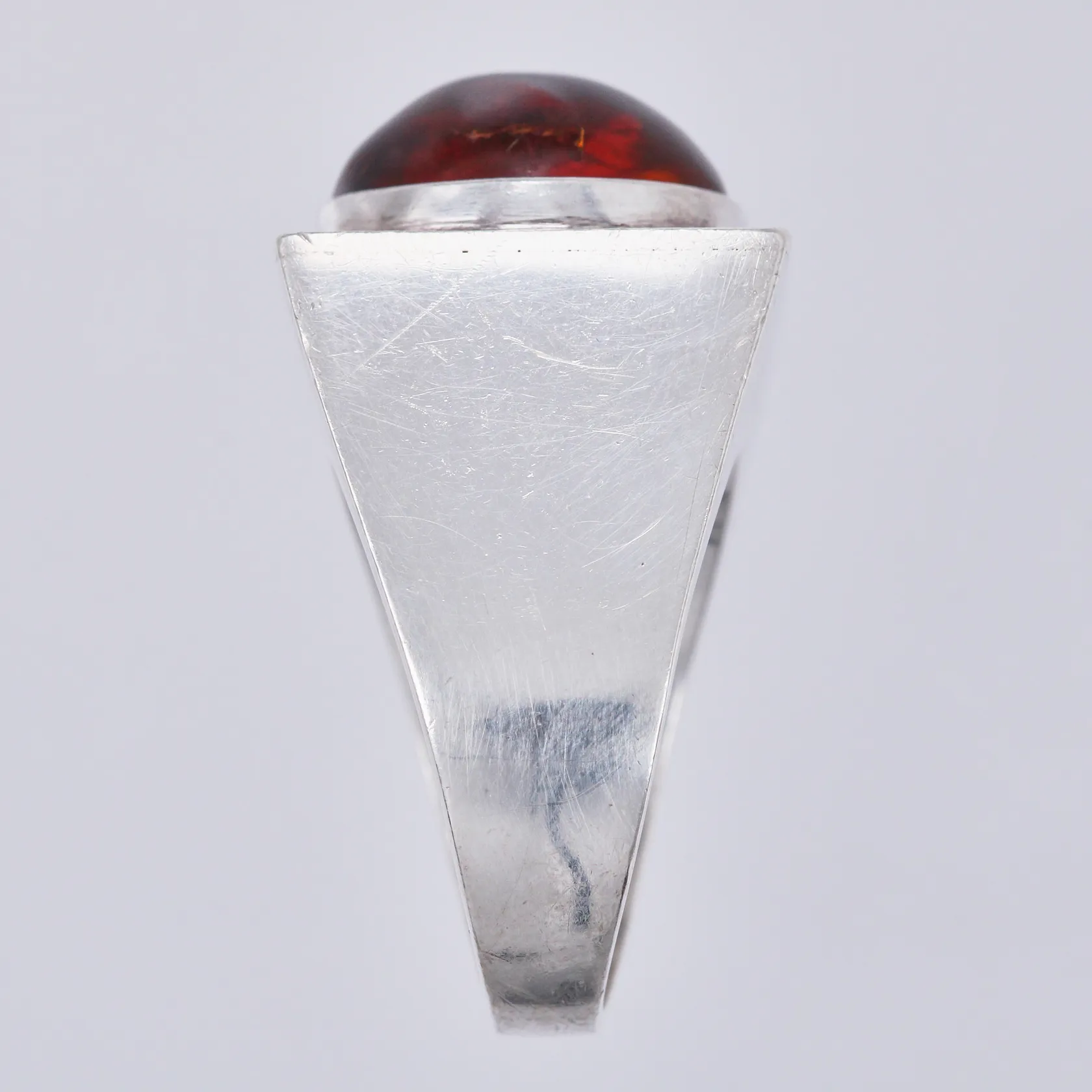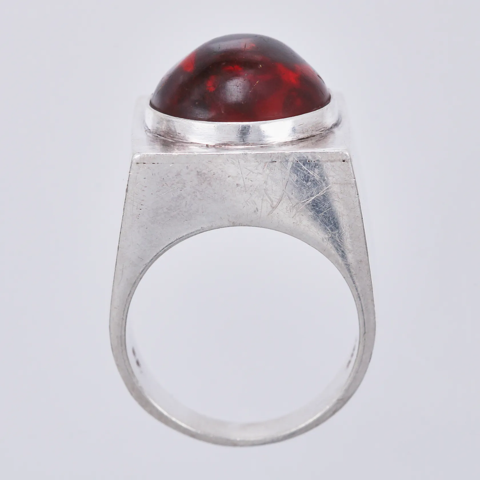 Ring med röd sten, stl: 18, bredd: ca 4-17mm, stämplad, EF., 925/1000, silver Vikt: 15,4 g.