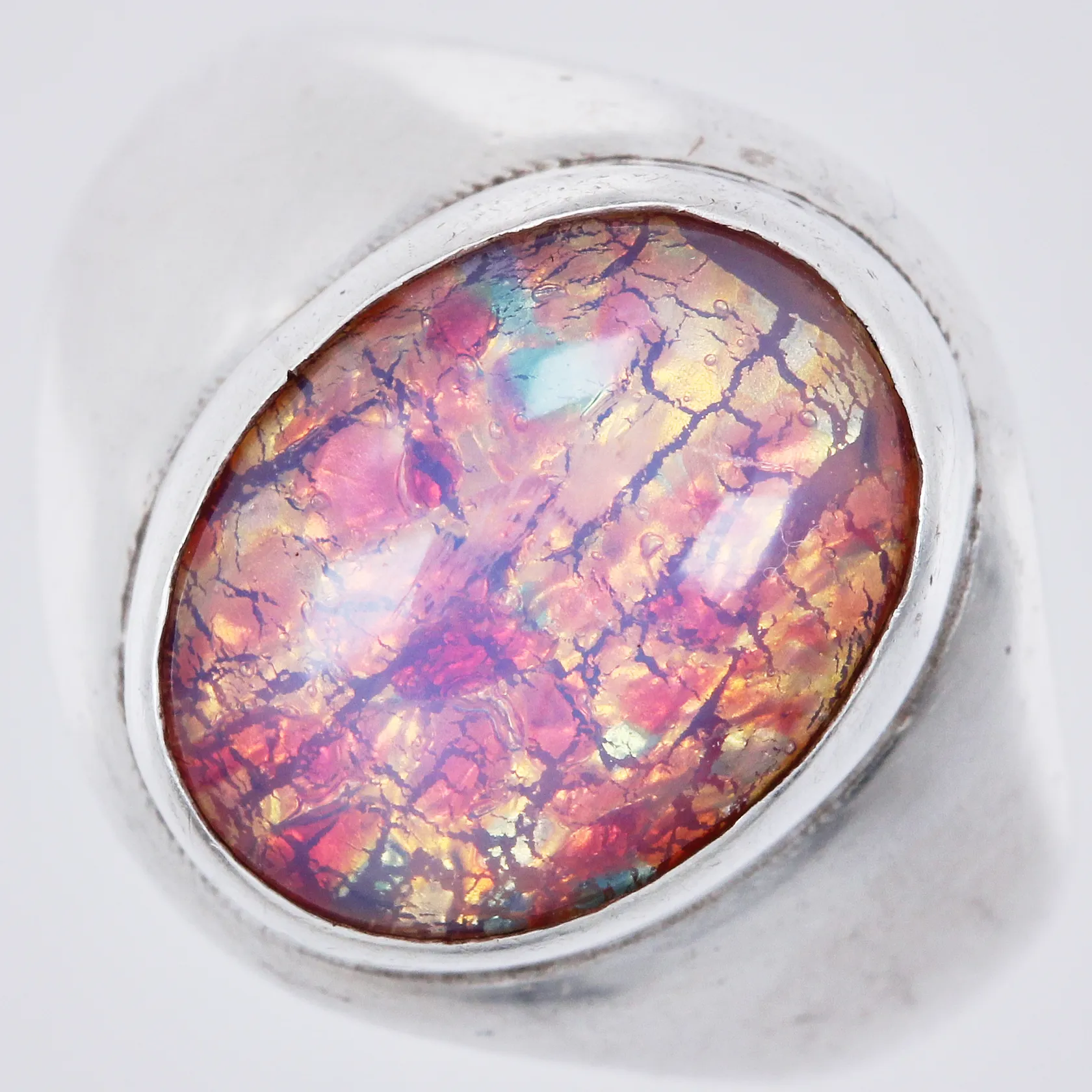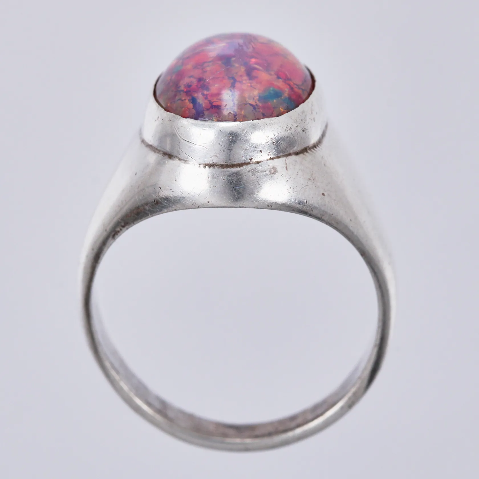 Ring med Opal imitation, stl: 20½, bredd: ca 3-20mm, 925/1000, silver Vikt: 16,6 g.