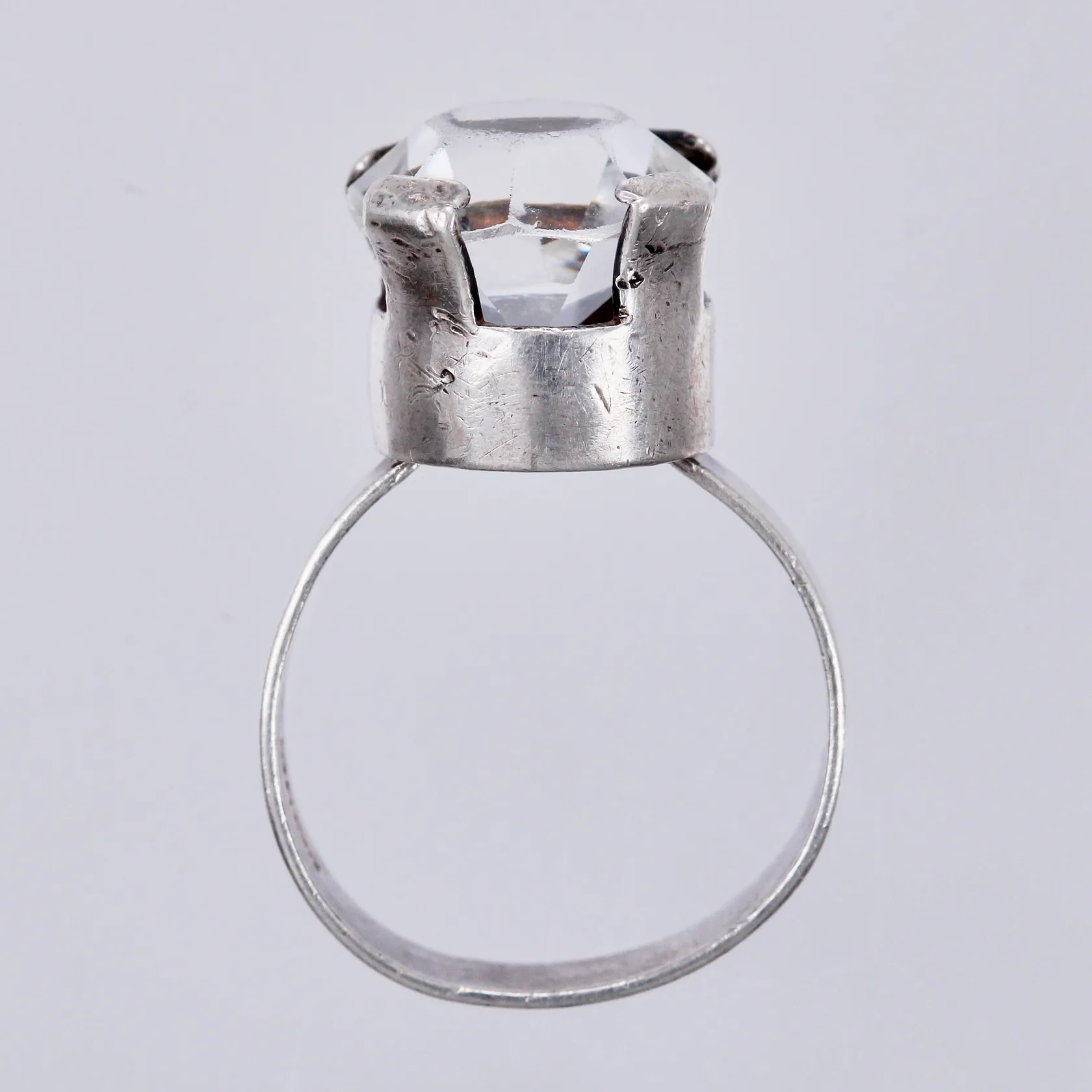 Ring med vit sten, stl: 16½, 5-11mm, Hedbergs Guld år 1971, 830/1000, silver Vikt: 3,7 g.
