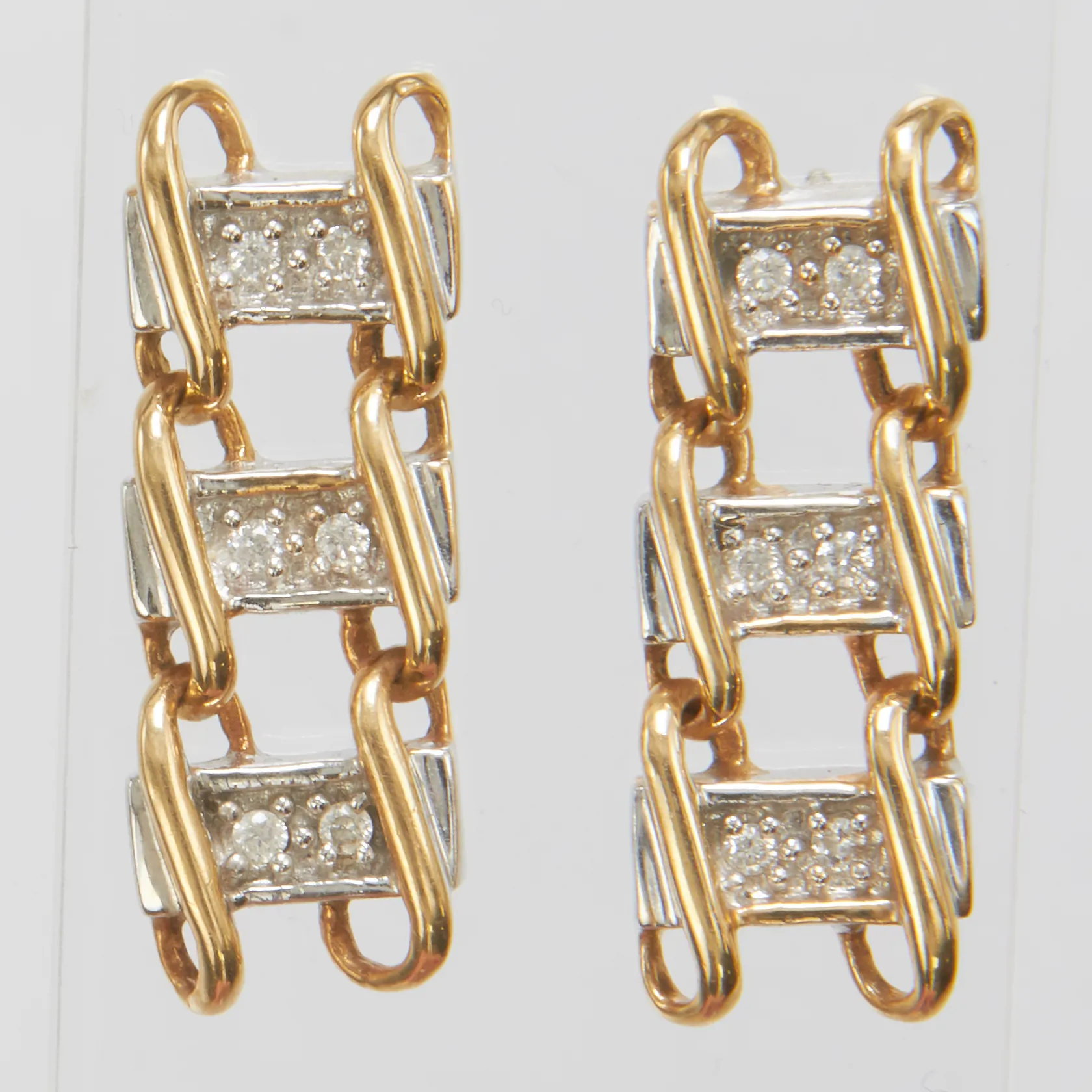 Örhängen, briljantslipade diamanter 12xca0,03ct, 27,5x10,5mm, stift, rödguld/vitguld, 14K. Vikt: 10,3 g.