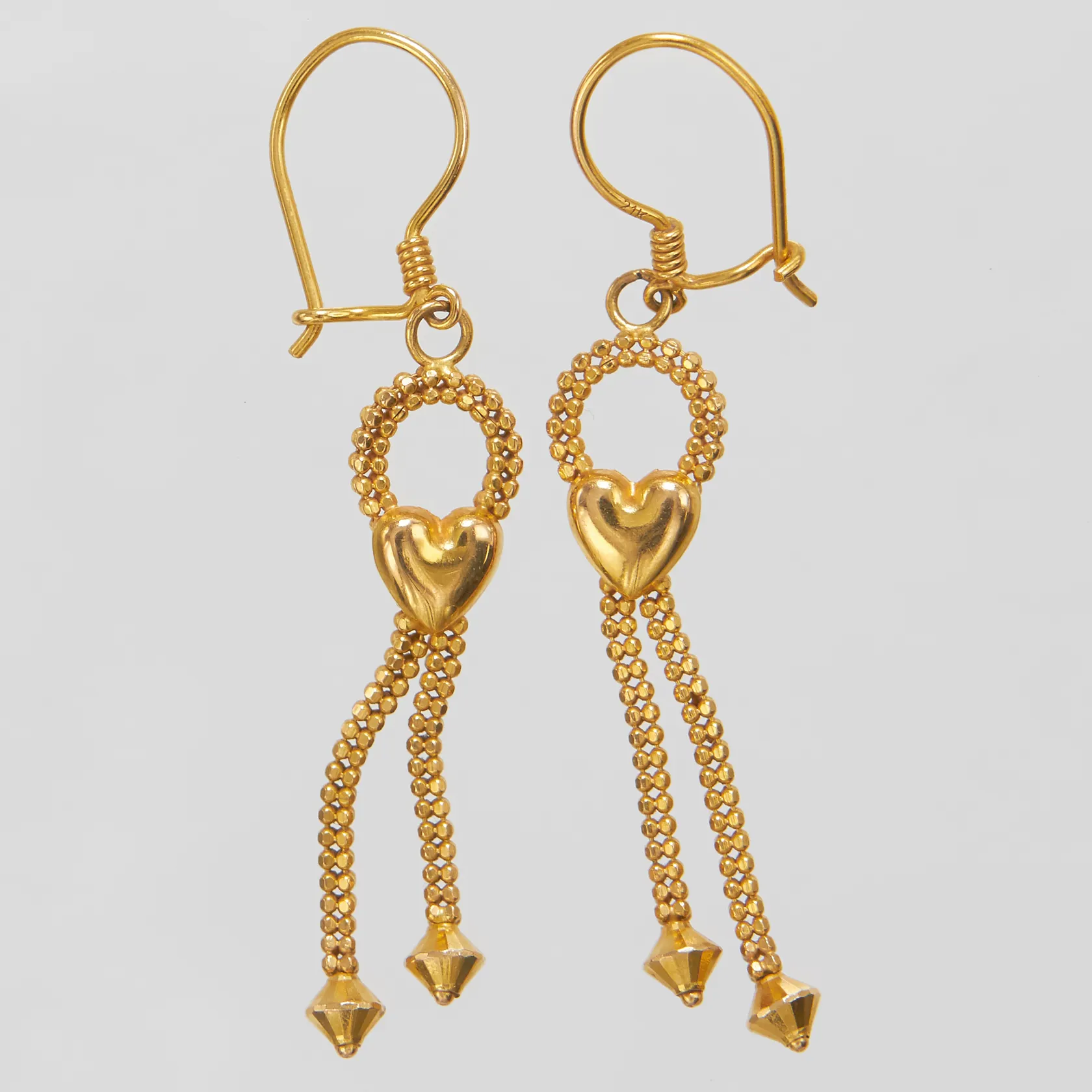 Ett par örhängen, längd ca 57mm, bredd 1-8,5mm, 21K Vikt: 5,2 g.