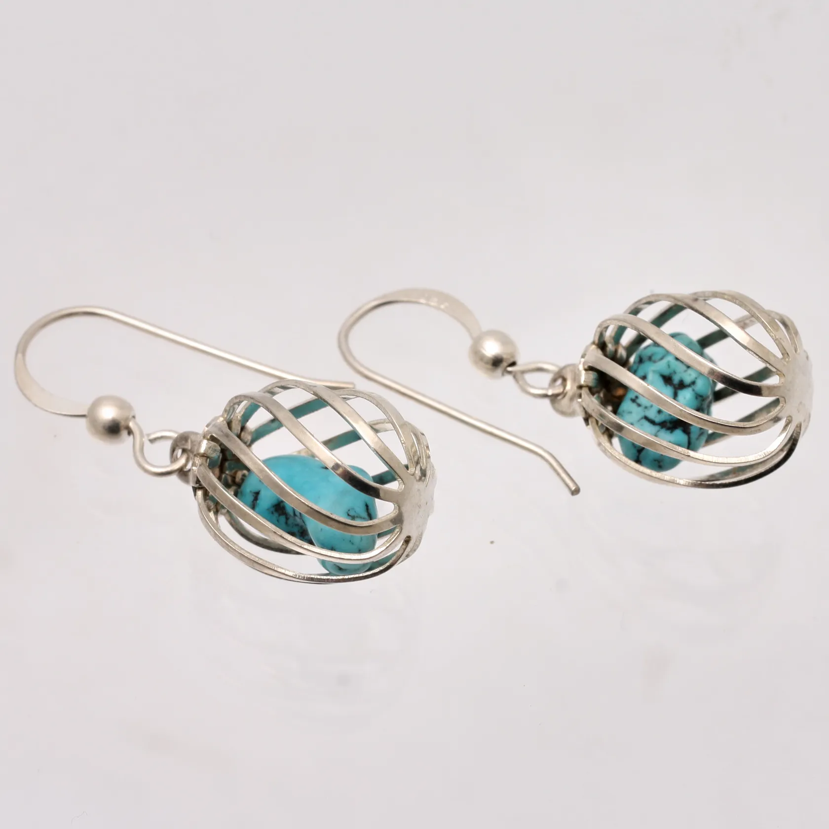 1par örhängen i silver, mått 12x30mm, turkosa stenar i vardera "korg", 925/1000, vikt 2,67g. Vikt: 2,7 g.