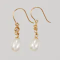 Ett par örhängen, ca 25mm, droppformade pärlor, vita stenar, lagad ögla, 18K Vikt: 1,9 g.