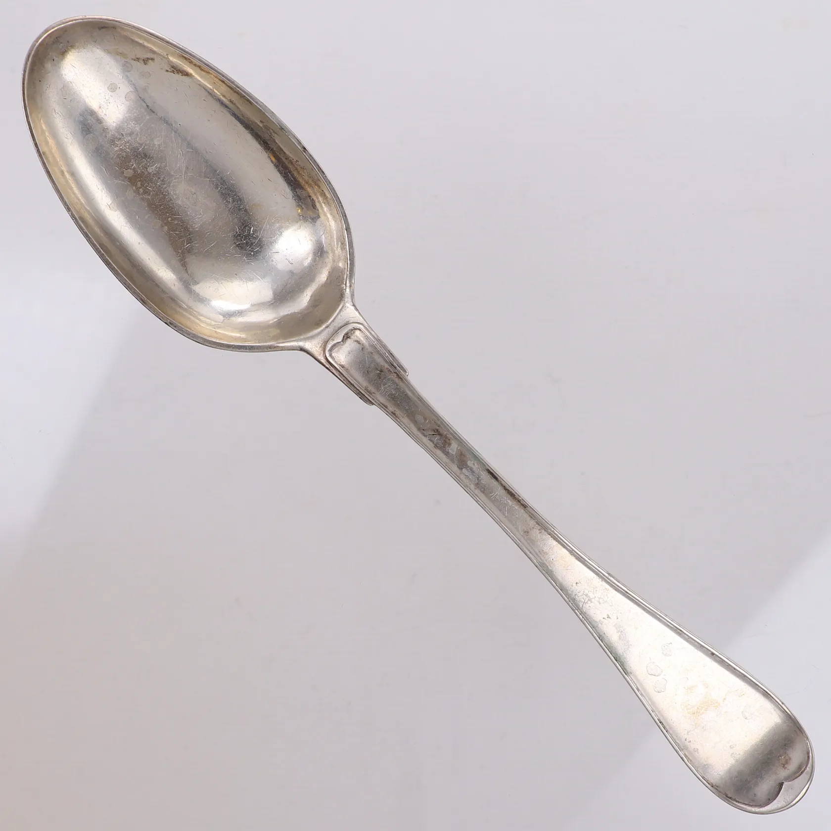 Sked, längd 23cm, otydlig tillverkare, år 1785, monogram, silver 830/1000 Vikt: 65 g.