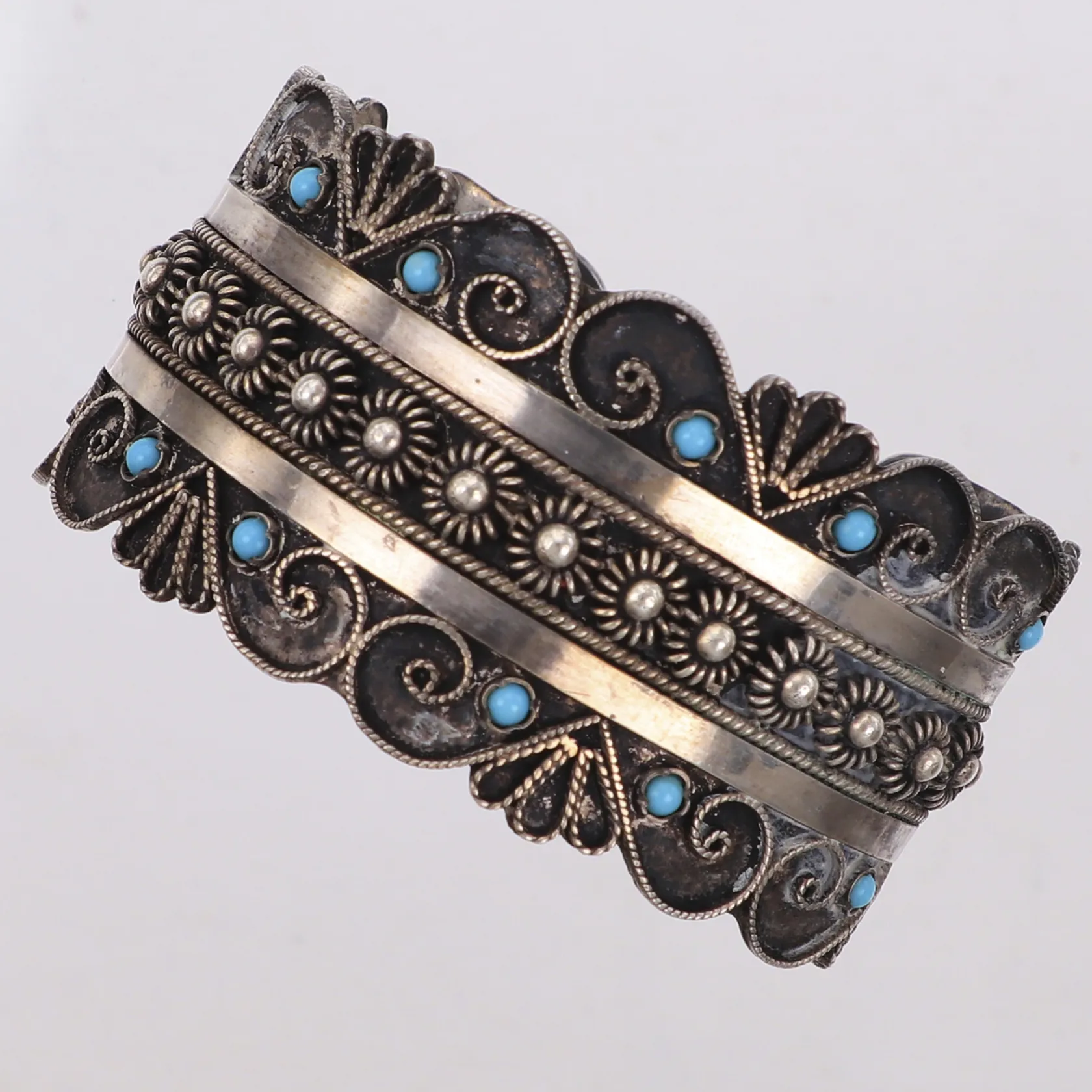 Stelt armband, Ø61mm, bredd 35mm, ljusblå stenar, silver Vikt: 45,3 g.