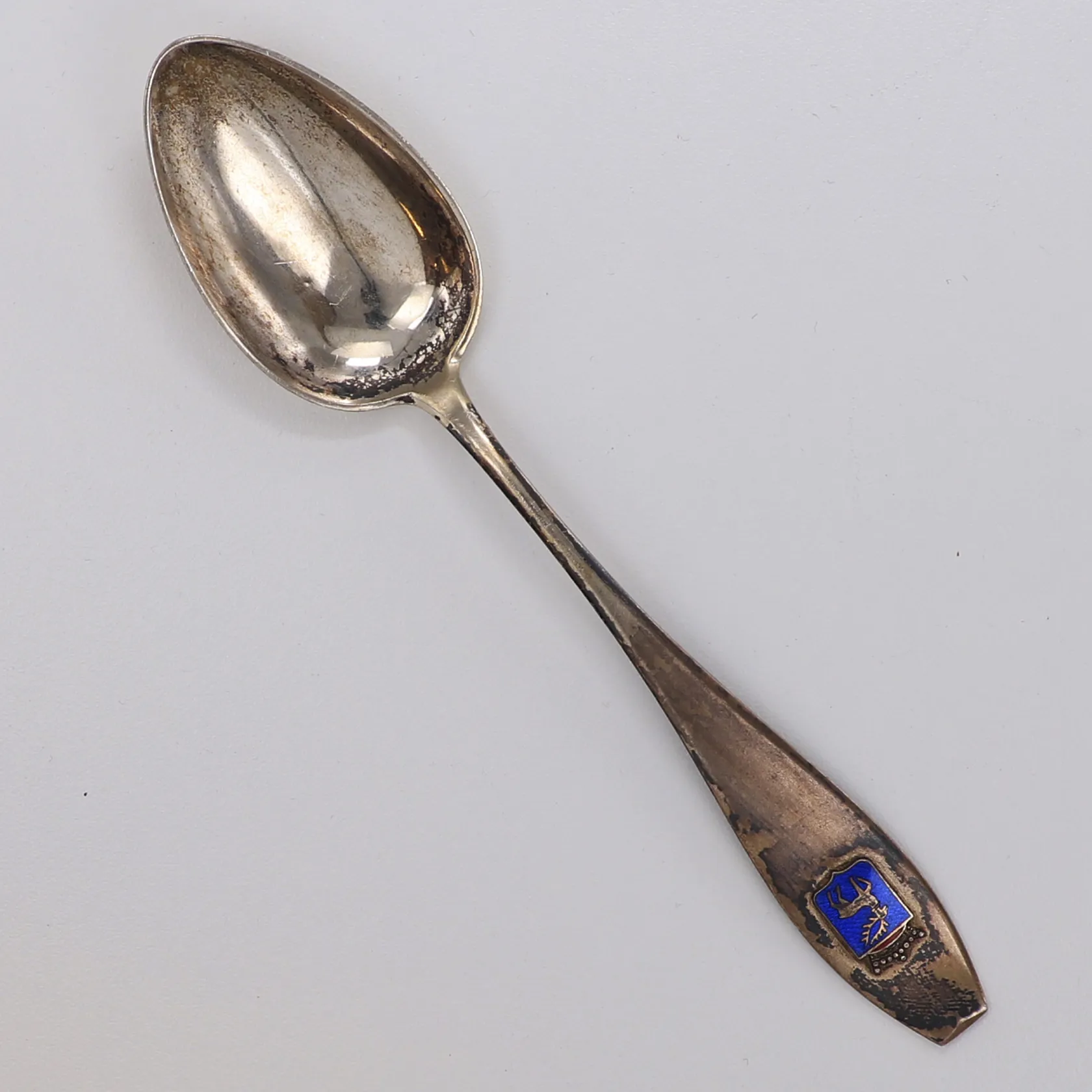 Sked, längd 16,5cm, vapensköld, namngravyr, 813/1000 silver Vikt: 22,9 g.