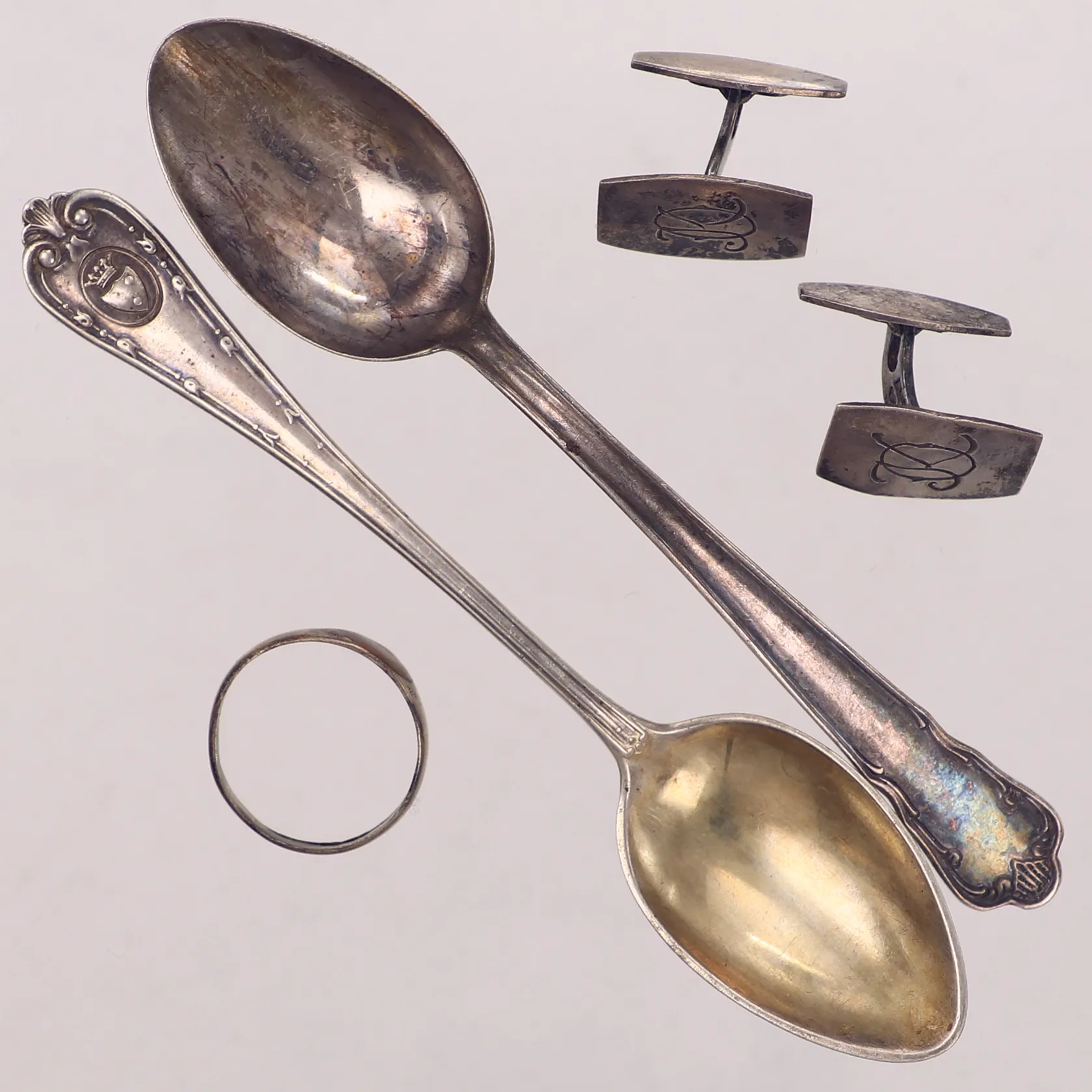 Diverse silver, defekt, gravyr, 830/1000 silver Vikt: 27,1 g.