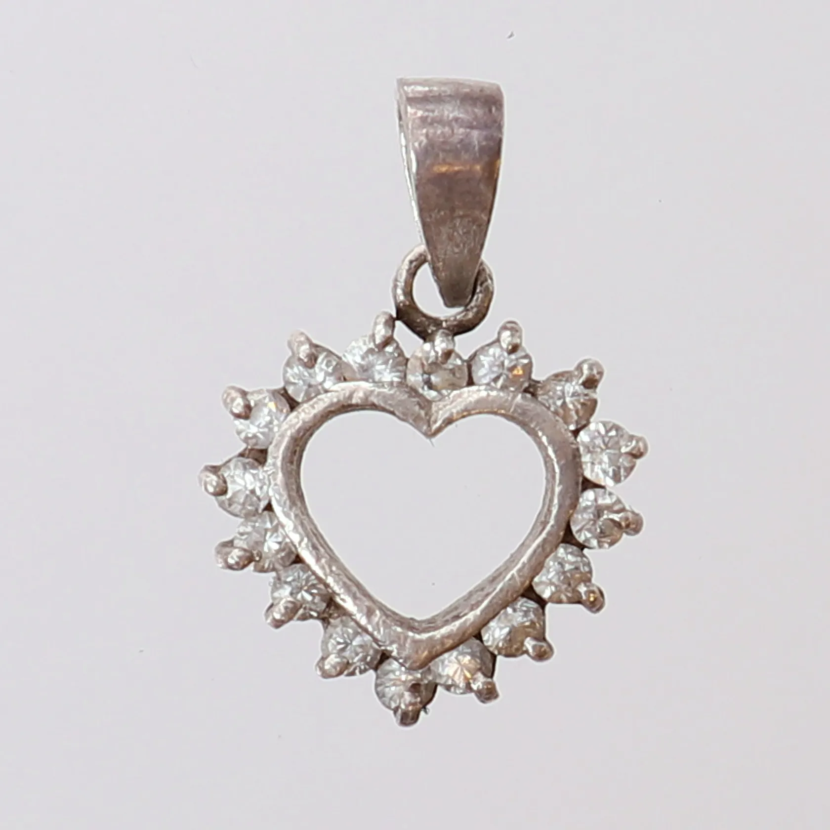 Hänge hjärta med vita stenar, ca 18x12mm inkl ögla. 925/1000 silver Vikt: 1 g.