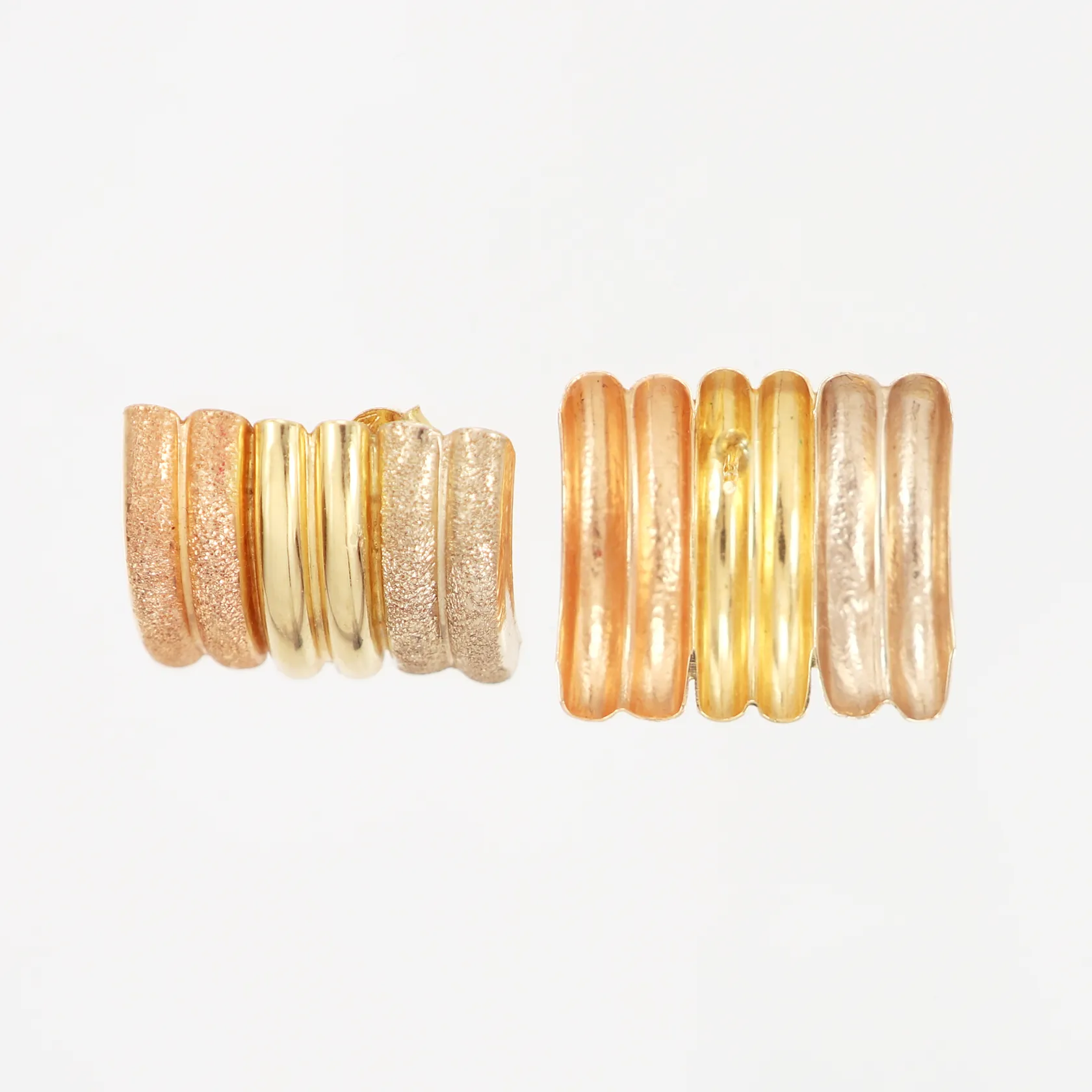 Ett par örhängen, trefärgad guld, längd 23mm, bredd 21mm, stift, en snurrebuss saknas, böjt stift, 18K Vikt: 5,6 g.