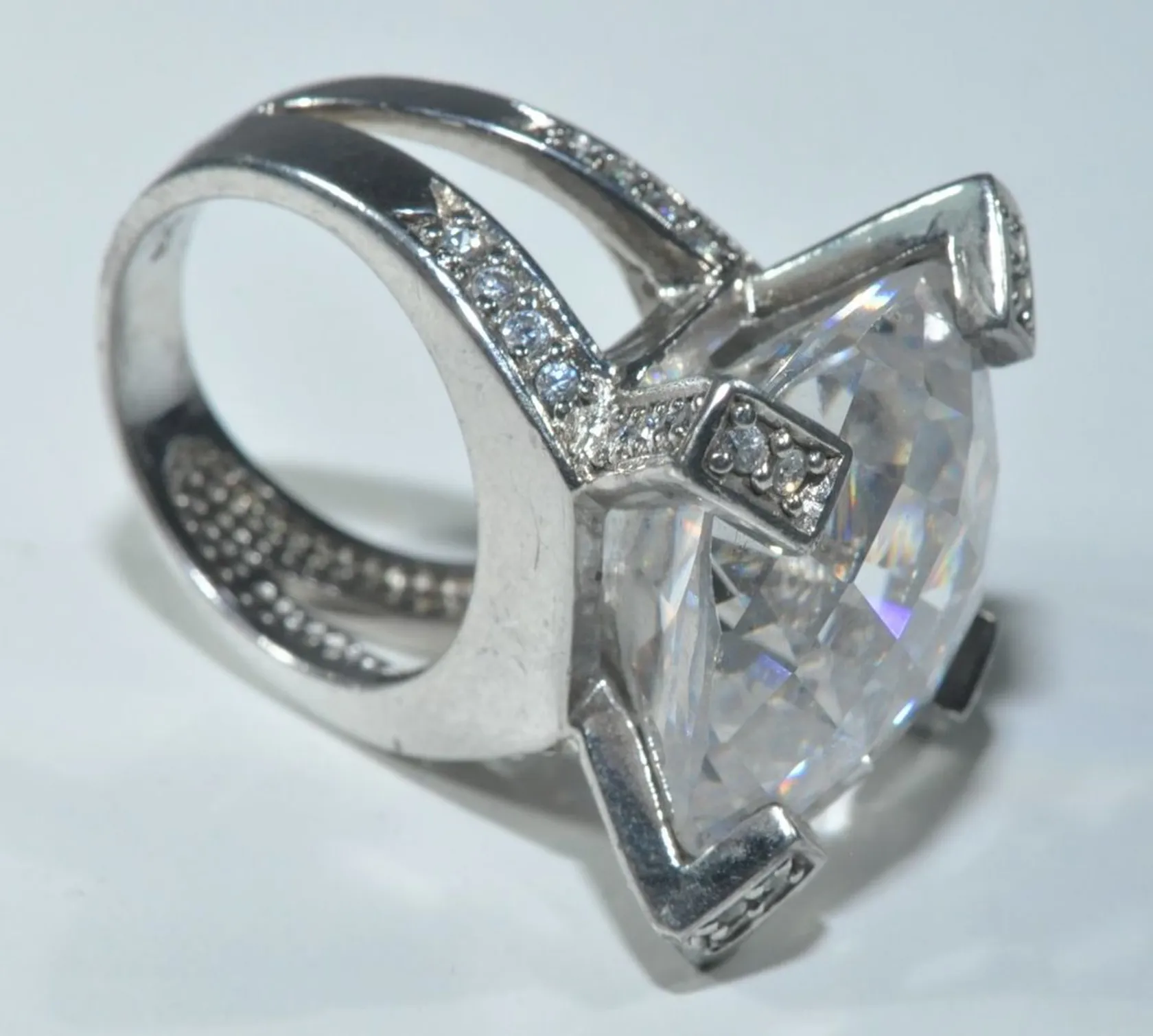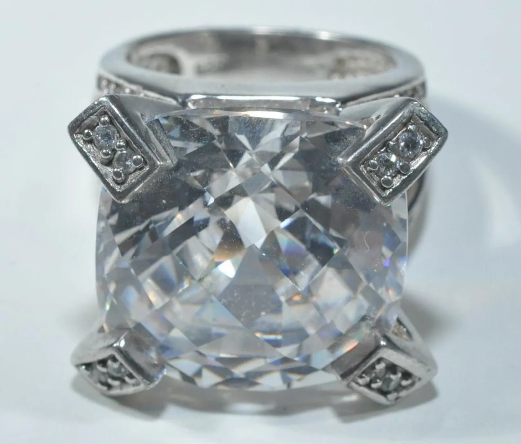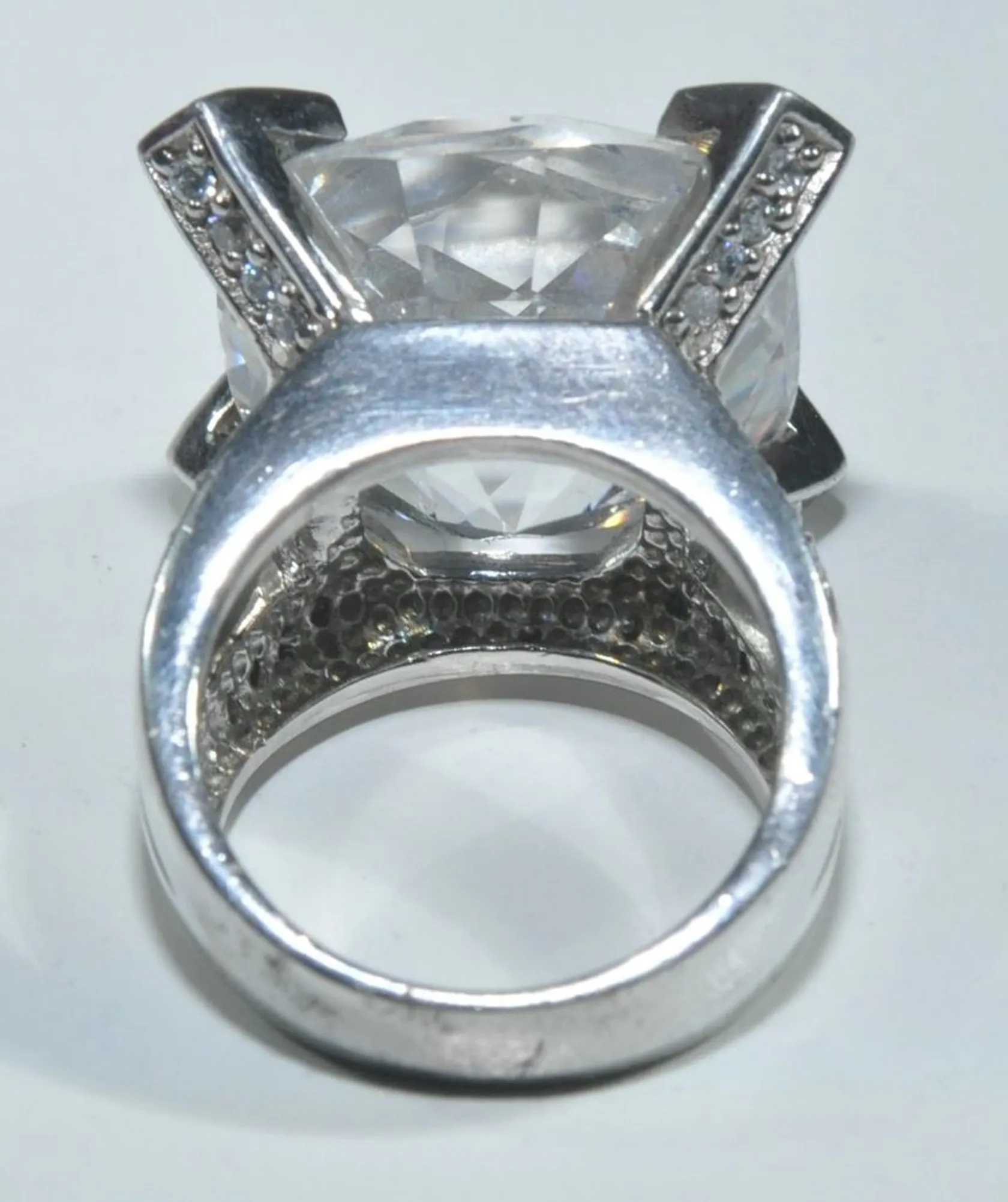 Ring med stenar, Ø 16,75 mm, bredd 5-18 mm mått sten ca 18,03 mm x 18,11mm, silver 925/1000 Vikt: 20 g.