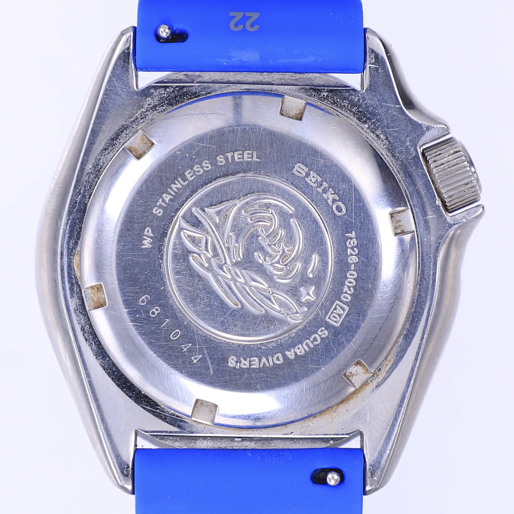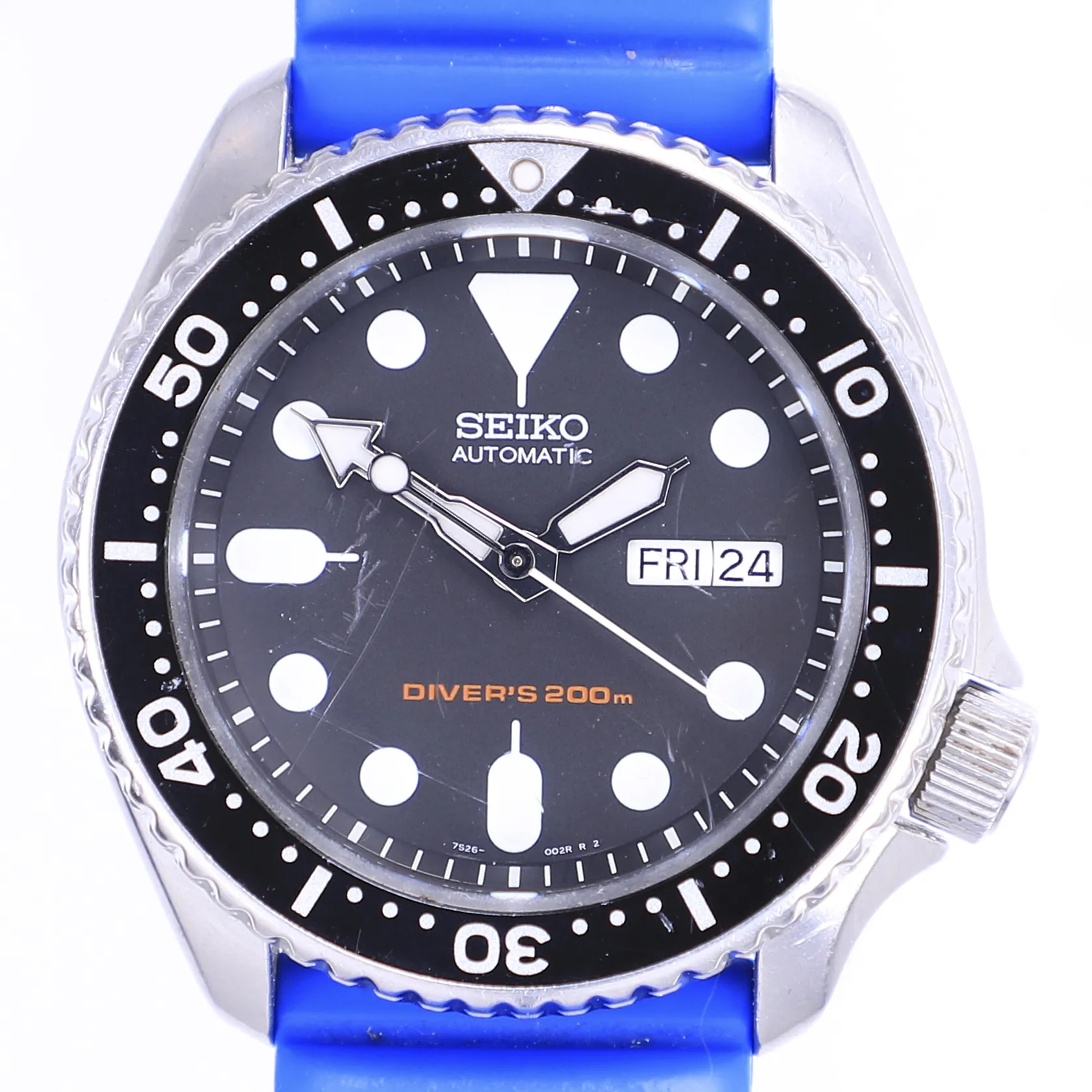 Herrur Seiko Divers, Ø42mm, automat, dag/datum, ref SKX007K1, serienummer 681044, engelsk/italiensk dagskiva, sliten boett, repigt glas, två gummiband ej original, ytterkartong (skadad), tag, cert, instruktionsbok