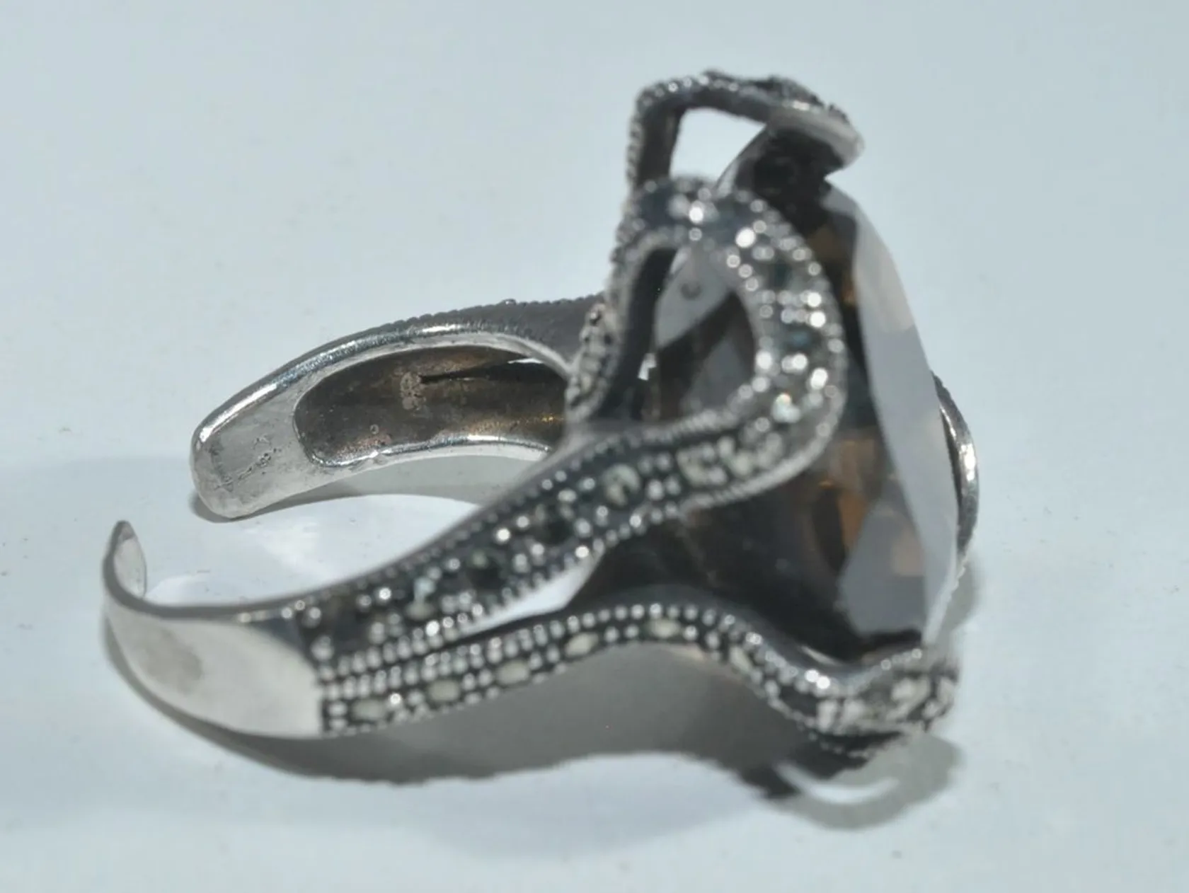 Ring öppen modell med stenar, bredd 21 mm, silver 925/1000 Vikt: 10,1 g.