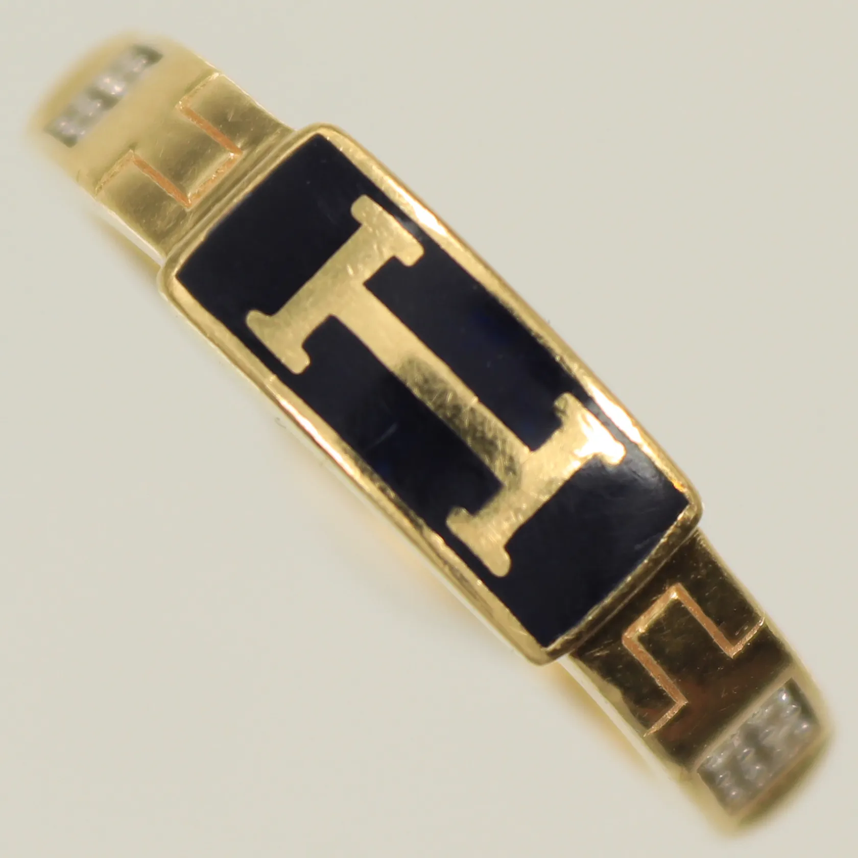 Ring med emalj och 8 vita stenar, stl 18 bredd 3-5mm, 18K Vikt: 3,3 g.
