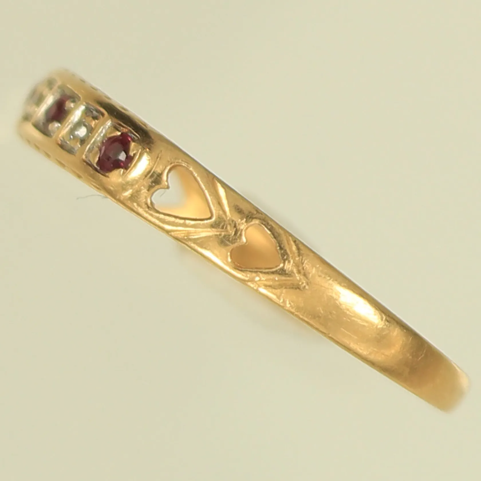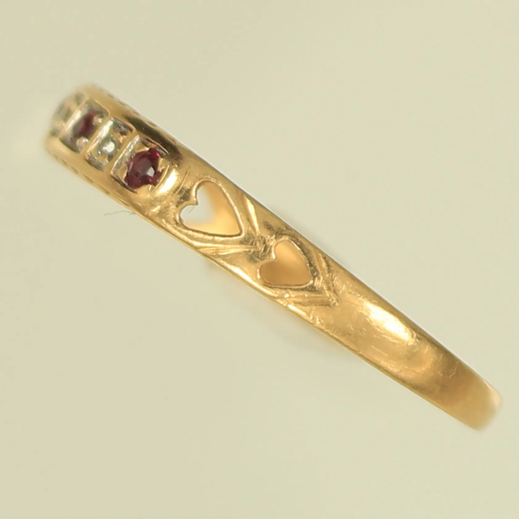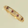 Ring med 3 vita och 4 röda stenar, stl 16½ bredd 2-3mm, 18K Vikt: 1,7 g.